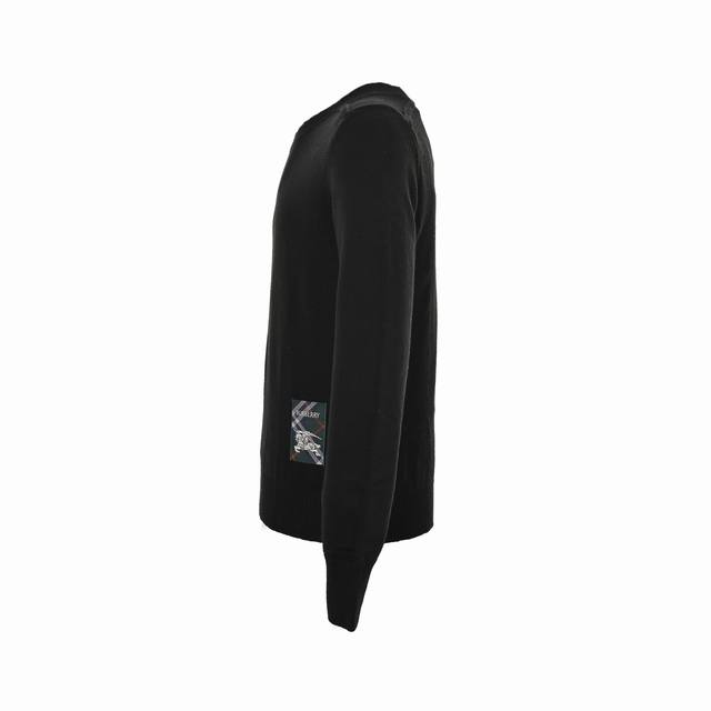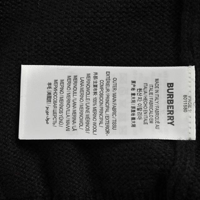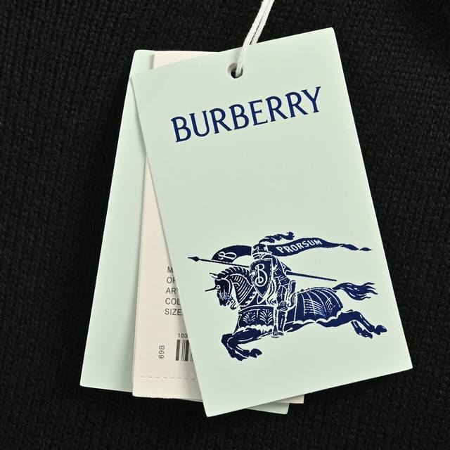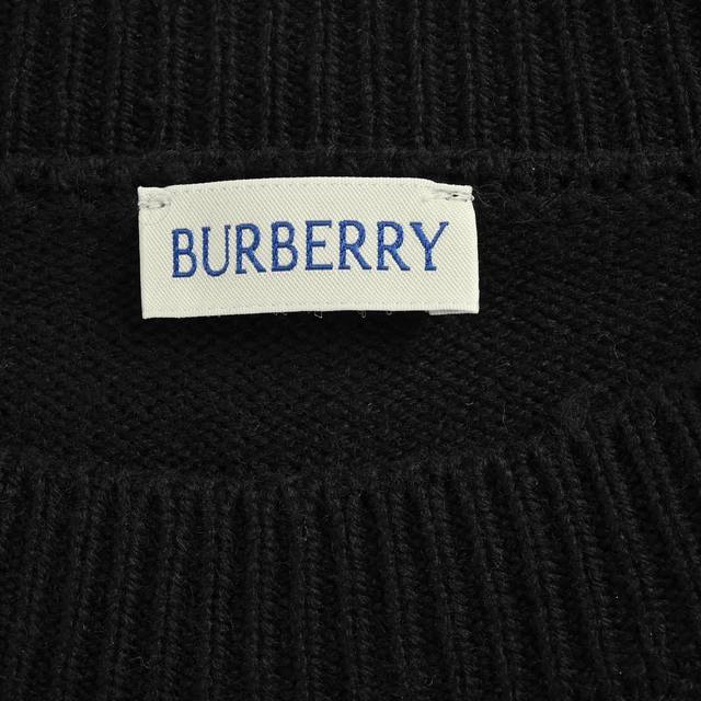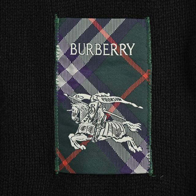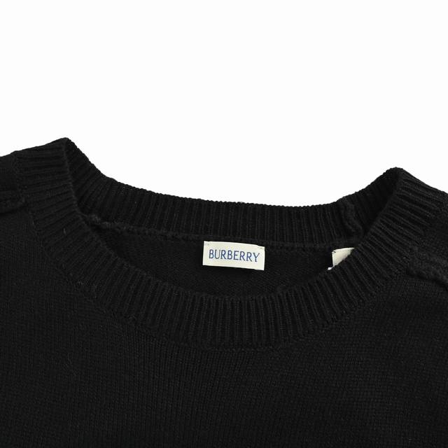 ) A new 25Ss Burberry wool sweater, knitted in Italian workshops, featuring a regular fit. The crew neck design is cleverly integrated with the Burberry check pattern, brand logo, and equestrian knight emblem (Ekd), creatively reinterpreting the label design of the brand's iconic trench coat. (