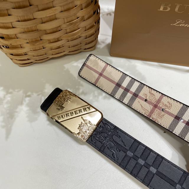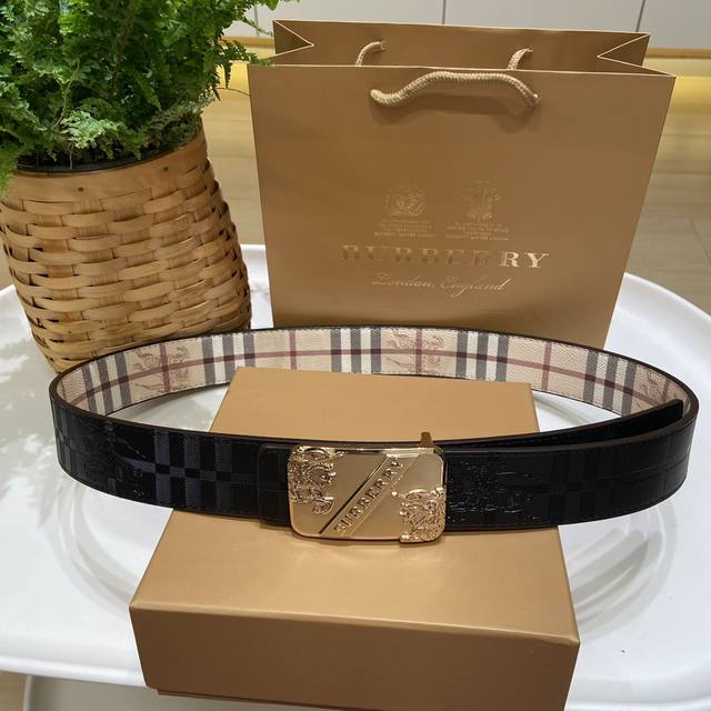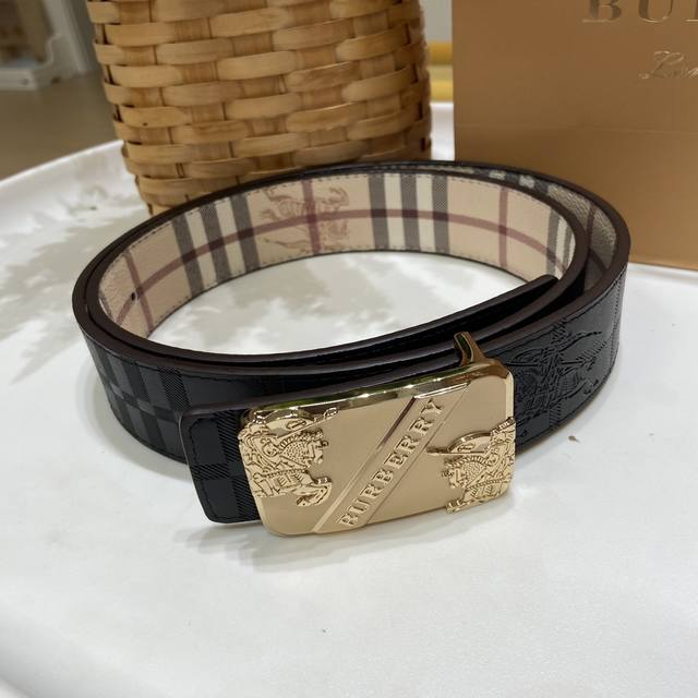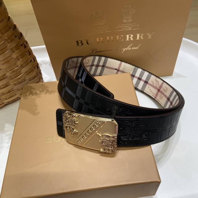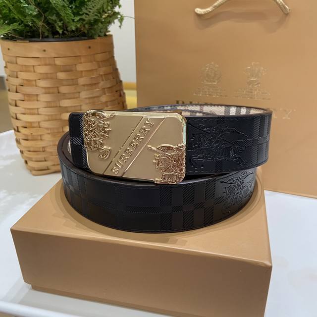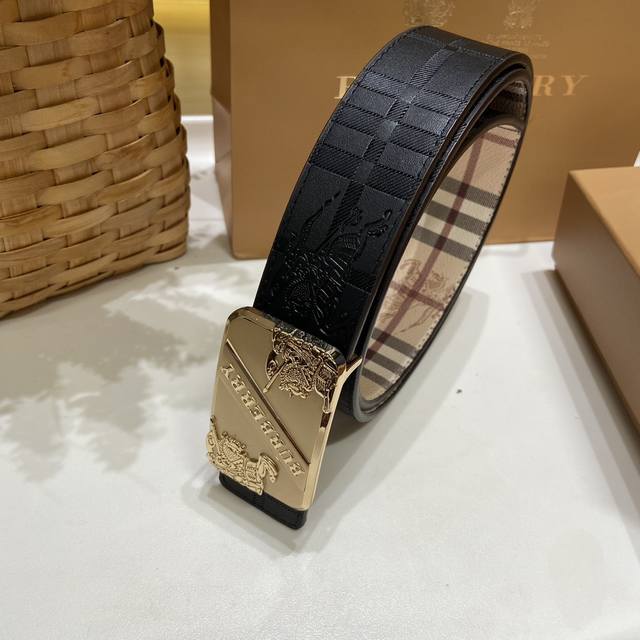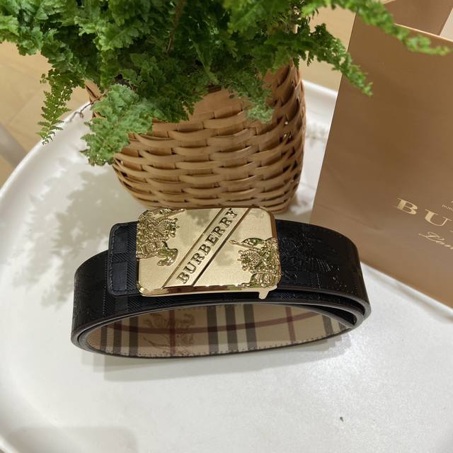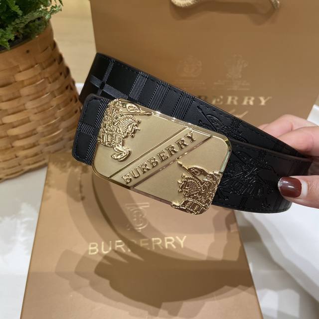 Burberry classic embossed belt, logo gold buckle, elegant and durable, the late