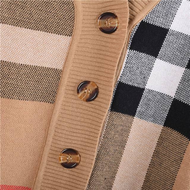 Burberry classic evergreen plaid cardigan long-sleeved sweater. Made with custom-dyed and spun yarn, sourced directly from the original fabric, and featuring a full set of custom-made accessories. Details matter. This heavyweight new piece weighs over 800 grams, is soft and delicate, and doesn't irritate the skin. It has a very nice feel against the skin. Loose fit, unisex. Color: Khaki. Size: SL.