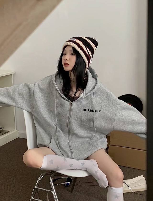 Burberry Classic Small Label Spring/Autumn Cardigan Zip-Up Hooded Sweatshirt Terry Coat