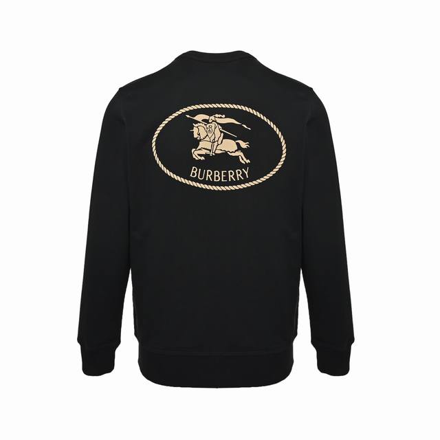 Burberry Crew Neck Sweatshirt with Circle Horse Print on Back. Made of 420g pure cotton fabric with a terry cloth sole, custom 32-count 2*2 ribbing, and double-washed. Comfortable and skin-friendly fabric with no irritation. Custom-dyed fabric with high weave density, excellent drape, and resistance to deformation. Thick weave combined with tight spinning process does not affect the sweatshirt's breathability. High color saturation. Features embroidered logo on the chest and circle horse print on the back. Loose fit, flattering and slimming, suitable for all body types. A super versatile and stylish sweatshirt for both men and women. Colors: Black, Khaki. Sizes: S-XL.
