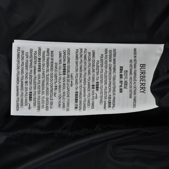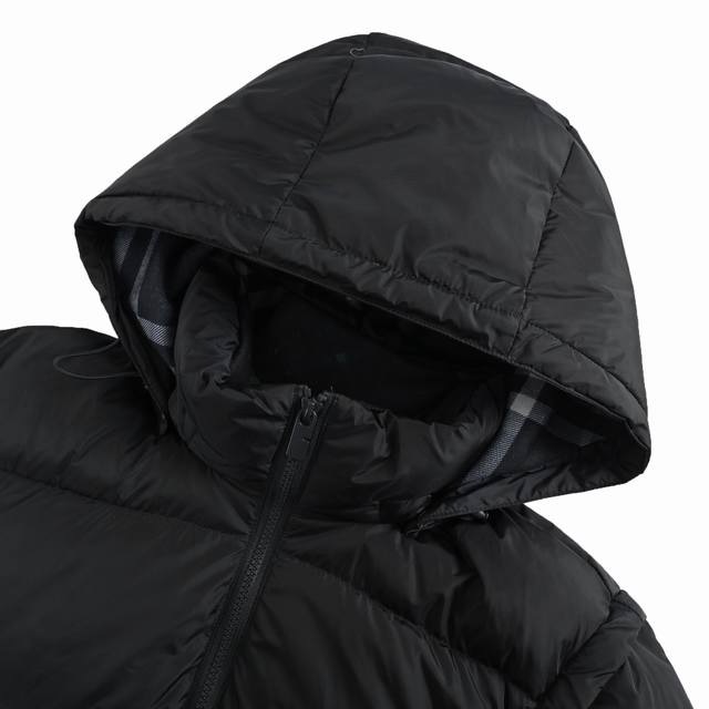 Burberry Detachable Round Logo Sleeve Down Jacket (Ddd) High-density nylon offers windproof, waterproof, and abrasion-resistant properties. A DWR water-repellent coating is applied to enhance its waterproof performance. The lining features a classic check pattern fabric, typically a blend, for added brand recognition. High-quality white duck down filling ensures sufficient loft for warmth. Laser cutting technology ensures precise and clean edges. The distribution of down filling is considered during cutting to ensure even warmth throughout. The check pattern in the hood is also meticulously replicated 1:1, quilted using a CNC quilting machine to ensure even and aesthetically pleasing quilting lines. High-strength nylon thread is used for the quilting, matching the color of the outer fabric for a cohesive look. Seams are finished with piping to prevent down leakage. Ribbed details are used in key areas such as the cuffs and hem for enhanced fit and comfort. Choose high-quality YKK zippers for durability and smooth operation. Customize the zipper pulls with your brand logo to increase brand recognition. Detachable sleeves convert the sleeves into a vest, increasing production costs. Size: S-XL
