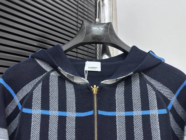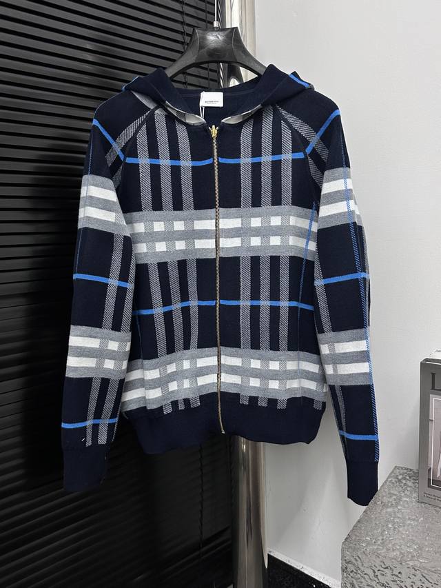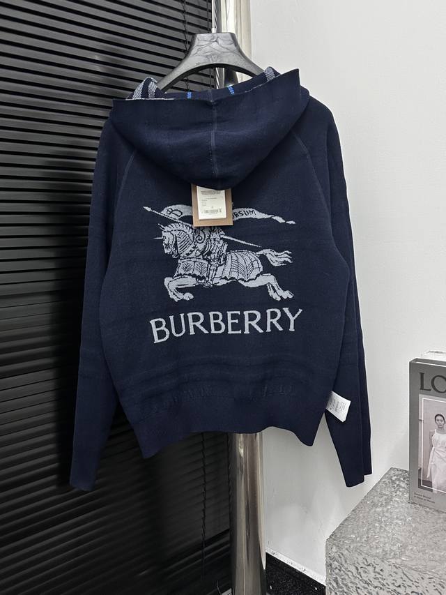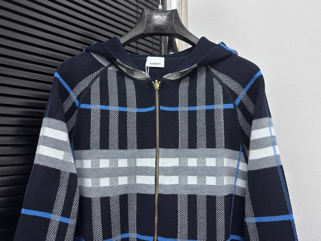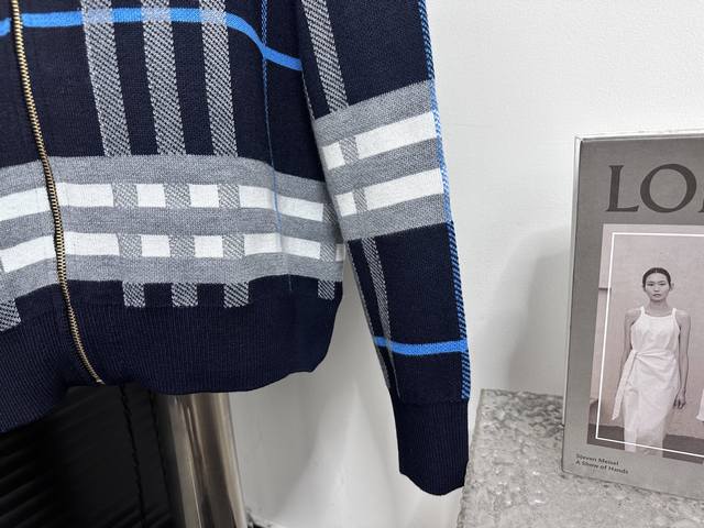 Burberry Double-faced Wool Logo Equestrian Check Knit Cardigan. A must-have for unisex everyday commuting and a touch of luxury. Correct version, welcome to compare. Made with German imported double-faced jacquard weaving technology. Ribbed neckline, cuffs, and hem for windproof comfort. The spacing and placement of the stripes and logo perfectly replicate the fabric's texture. Sizes : SL.