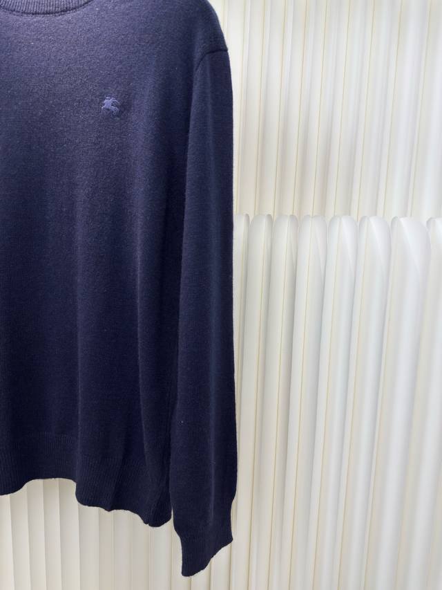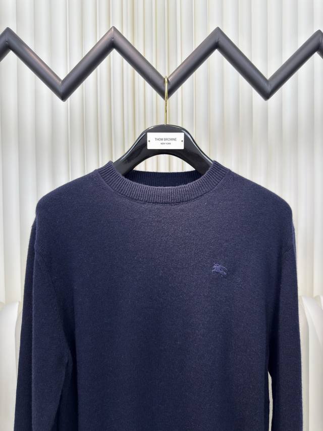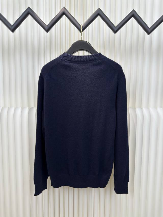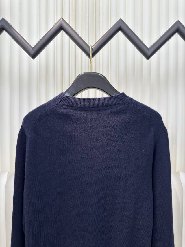 Embroidered Crew Neck Knit Sweater. Primarily made of cashmere, this sweater offers exceptional feel, warmth, and lightness while providing an unparalleled wearing experience. A small amount of polyamide and Lycra enhances overall durability and pill resistance, weaving an invisible support network into the soft cashmere while maintaining a degree of elasticity for a better fit and freedom of movement. Ribbed trim at the neckline and cuffs uses a similar blend of fabrics, further enhancing the texture and wearing experience. Due to the nature of the sweater fabric, the stretch during ribbing is just right, and a heat-fused padding is used underneath the knit for temporary stability and support, preventing shrinkage that could cause pattern distortion, wrinkling, and stitch indentation after removal. The high-precision computerized embroidery machine's calculation program system controls the embroidery frame to move in the XY directions, while the needle shuttles up and down, embroidering according to the set path. It automatically completes actions such as thread cutting and skipping, forming the stitch trajectory. It automatically adjusts the tension of the upper and lower threads to ensure smooth, free-floating stitches, creating a warhorse pattern with an error of