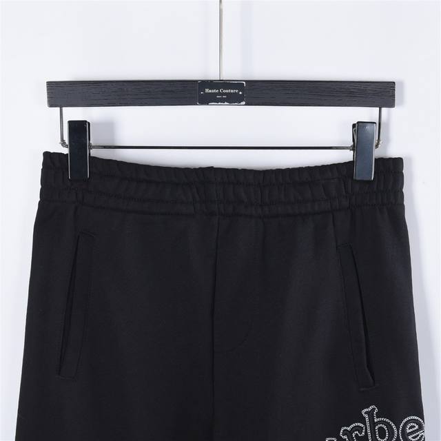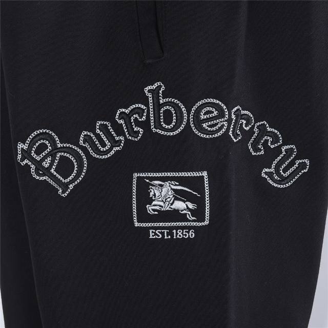 Burberry Embroidered Letter and Pony Logo Trousers. Made from premium 420g pure cotton, these trousers offer a crisp, stylish look with a comfortable, breathable feel. The drawstring waist allows for adjustable fit to ensure a comfortable and flattering fit. Practical side pockets on both sides are convenient for carrying small items, while a classic back patch pocket adds a touch of style. The sides are subtly embroidered with the Burberry letter logo, echoing the pony logo embroidery on the body, highlighting the brand's unique identity and fashionable style. The overall design is simple yet detailed, cleverly blending classic brand elements with everyday wearability. Color: Black. Size: S-XL.