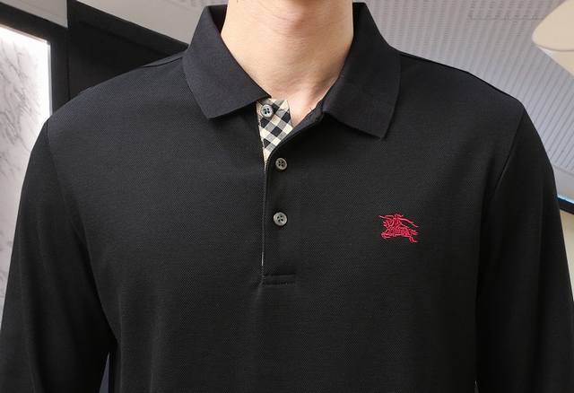 Burberry Exclusive New Original Men's Polo Long-Sleeve High-End Customized High-Version Fashionable and Versatile Bestseller Original Imported Pure Cotton Fabric, Logo Pattern Design on Chest, Super Soft and Delicate Feel, Skin-Friendly and Comfortable to Wear, High-End Boutique Factory, Exquisite Workmanship, Excellent Fit, Must-Have Item for Men, All Labels Complete, Sizes M-4XL, Multiple Colors DDD