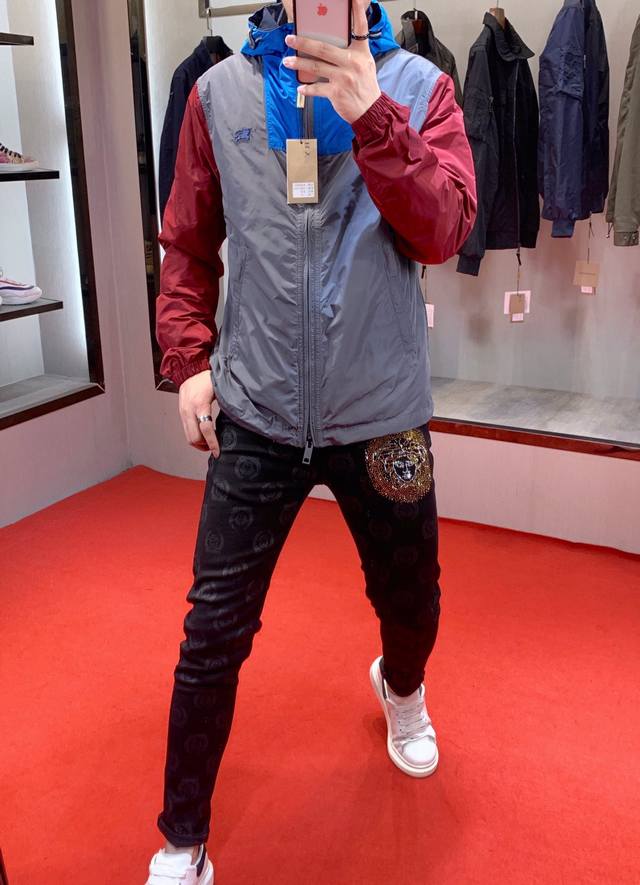 Burberry Fall/Winter Newest Hooded Jacket, 1:1 replica of the original, with impeccable craftsmanship and meticulous stitching. Features an embroidered equestrian design on the chest, patchwork tailoring, and premium polyester fabric. Super stylish and easy to wear