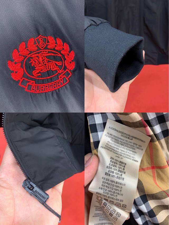 Burberry Fall/Winter's latest stand-collar coat, a 1:1 replica of the original, with impeccable craftsmanship and meticulous stitching. Features a classic equestrian motif embroidered on the chest, made from premium polyester fabric, and boasts a super stylish and effortlessly chic look. A must-have for fashionable men! Sizes M-3XL