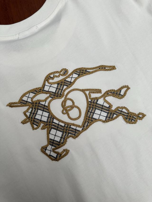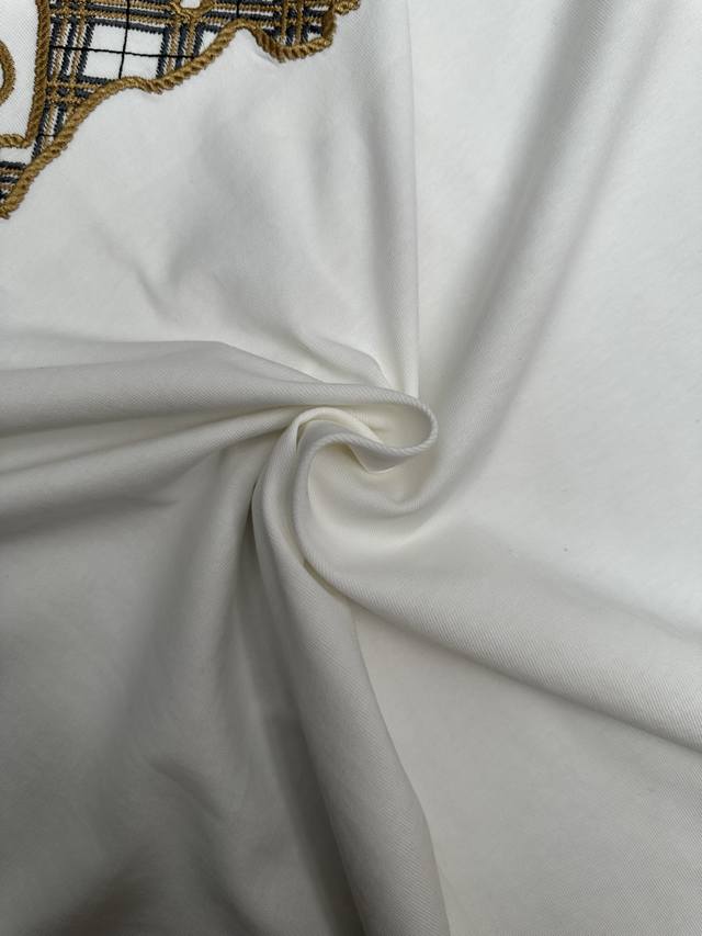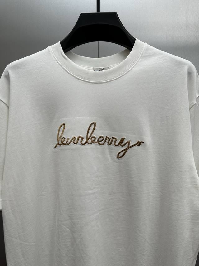 Burberry Gold Label Embroidered White T-Shirt DDD Made of 320g heavyweight fabric, this pure white T-shirt features Burberry gold handwritten embroidery, exuding a sophisticated luxury feel in its simplicity. Made from select high-count double-ply pure cotton, it's soft, skin-friendly, and wrinkle-resistant, maintaining its shape even after multiple washes. The relaxed, dropped-shoulder cut is incredibly flattering, easily accommodating both plus-size and larger figures. DDD Size: SML XL DDD