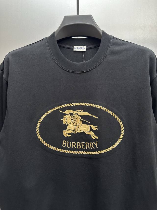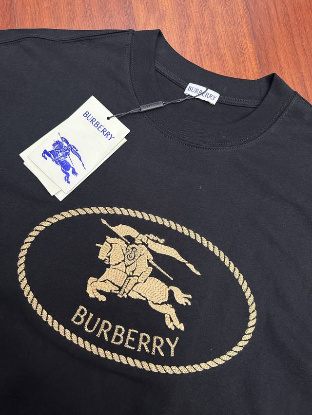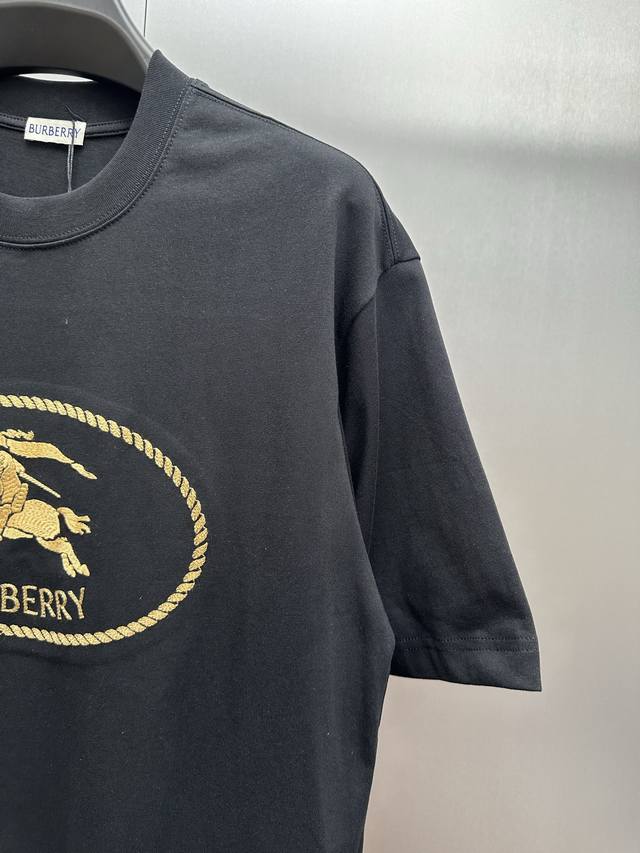 Burberry Gold Label Horse Embroidery Black T-Shirt DDD Made of 320g heavyweight fabric, this black T-shirt features a gold oval horse embroidery, showcasing classic Burberry elements and exuding luxury style with understated elegance! Made from select high-count combed cotton, it's soft, breathable, and cool to the touch, perfect for summer wear without feeling stuffy or sweaty. It also retains its shape even after multiple washes. DDD Size: SML XL DDD