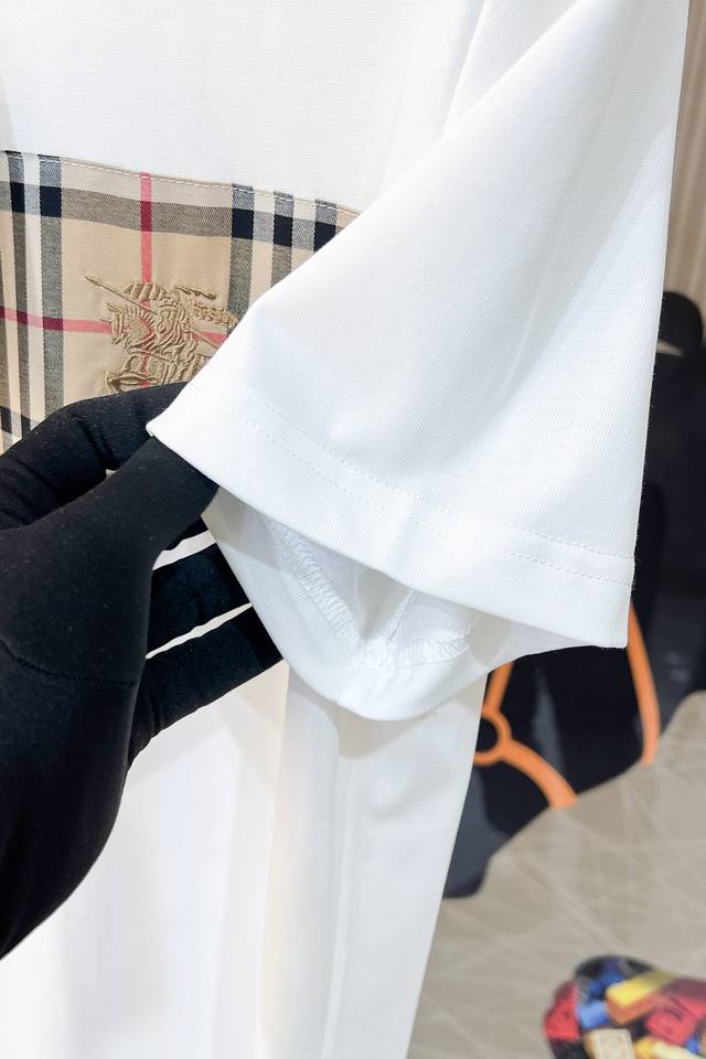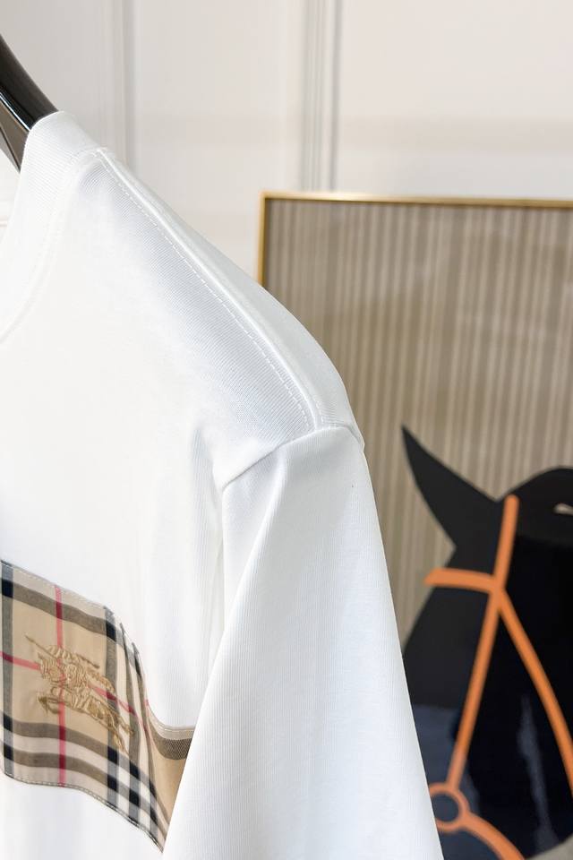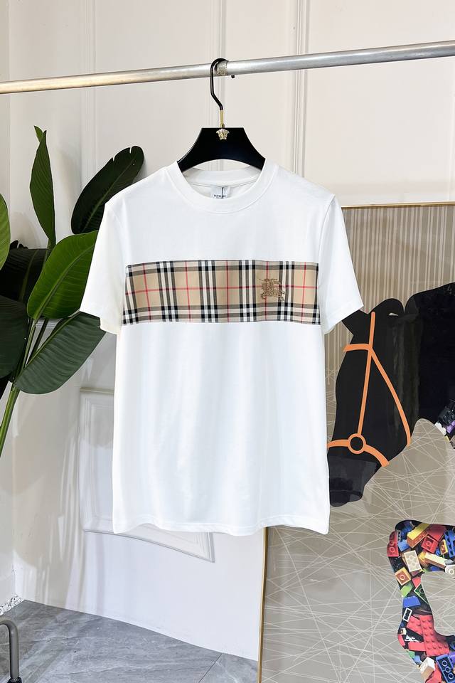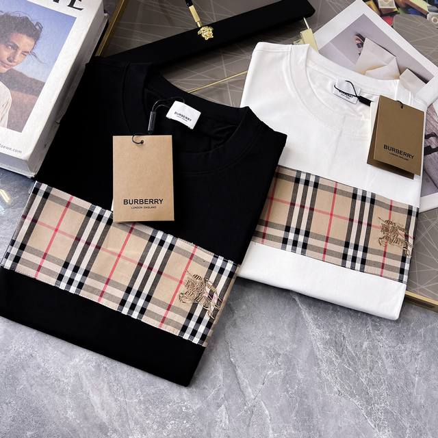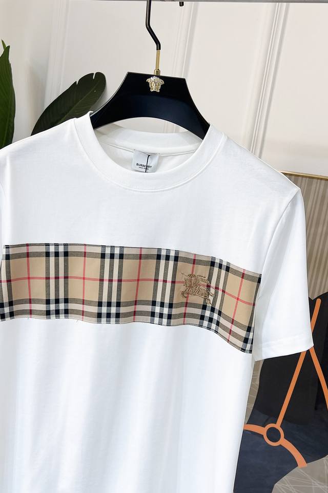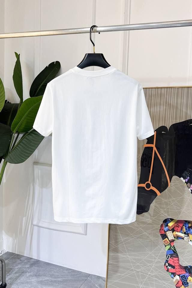 Burberry haute couture fabric, silky smooth like silkworm silk, 2025 Spring/Summer new arrival. Fashionable and classic round neck short-sleeved style, more stylish and comfortable, high-standard customization, very stylish when worn, hand-painted process, customer-supplied accessories, customer-supplied imported high-end fabric with very delicate texture, exquisite and meticulous details, a highly versatile piece that can be paired with any fashion, super good fit, a must-have item for trendy men. Sizes: M-XXL. Colors: Black, White.