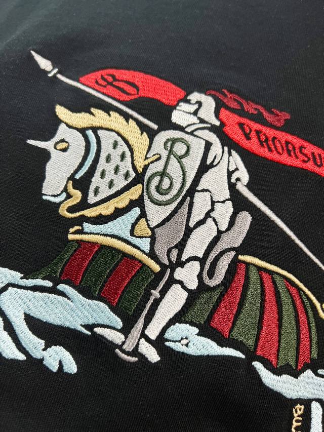 Burberry High-Quality 320g Crew Neck Short Sleeve T-Shirt. Features the brand's classic 3D color-blocked horse embroidered logo on the chest. Officially synchronized with the 2025 SS collection. High-quality, fashionable, versatile, and trendy. Made with original fabric and tags. Includes hangtags, neck labels, and wash labels. Colors: Black, White. Sizes: S, M, L, XL.