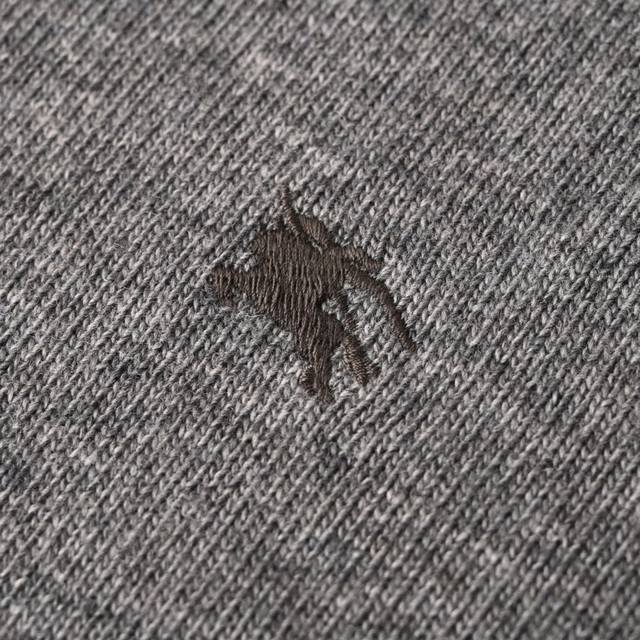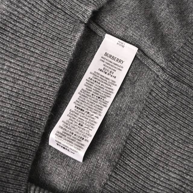 Burberry Horse Embroidery Crew Neck Knit Sweater (Ddd) This sweater features cashmere as its primary fabric, offering exceptional feel, warmth, and lightness while providing an unparalleled wearing experience. A small amount of polyamide and Lycra enhances overall durability and pill resistance, weaving an invisible support network into the soft cashmere while maintaining a degree of elasticity for a better fit and freedom of movement. Ribbed trim at the neckline and cuffs uses a similar blend of fabrics, further enhancing the texture and wearing experience. Due to the nature of the sweater fabric, the stretch during ribbing is just right, and a heat-fused padding is used underneath the knit for temporary stability and support, preventing shrinkage that could cause pattern distortion, wrinkling, and stitch indentation after removal. The high-precision computerized embroidery machine's calculation program system controls the embroidery frame to move in the XY directions, while the needle shuttles up and down, embroidering according to the set path. It automatically completes actions such as thread cutting and skipping, forming the stitch trajectory, and automatically adjusts the tension of the upper and lower threads to ensure smooth, free-floating stitches, creating a warhorse pattern with an error of