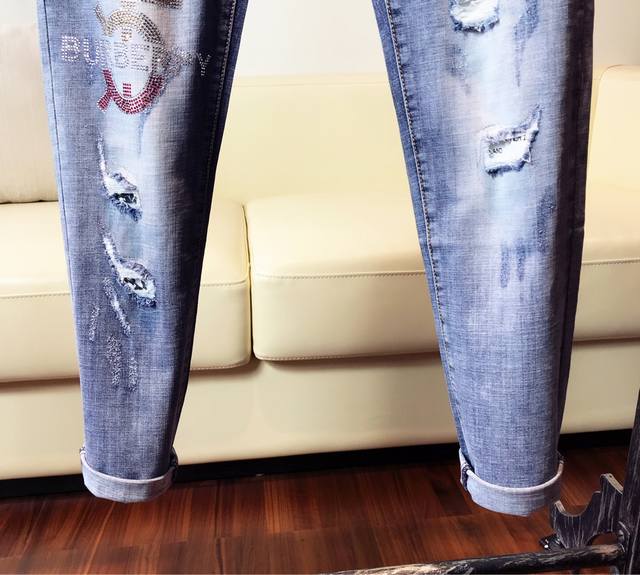 Burberry Jeans - Top-quality imported original jeans, crafted with original hardware and accessories. Features heavy-duty hot-fix rhinestones. Made with custom-made denim fabric, perfectly matching the original. We welcome you to try them on at a Burberry store before purchasing. A truly high-quality product. Sizes: 28-36 DDD