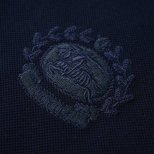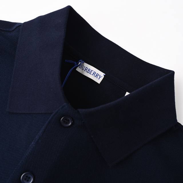 Burberry Knight Wheat and Horse Embroidery Short-Sleeve Polo Shirt. Made from pique knit cotton, this shirt features a double rib knit creating an alternating honeycomb texture with a fine mesh structure for enhanced breathability. The cotton yarn retains its natural skin-friendly properties and undergoes a combing process to remove short fibers, improving the fabric's smoothness and providing durability, wrinkle resistance, and a crisp, structured look. The collar and body seams are reinforced with a three-needle, five-thread overlock technique. The button closure features hand-polished buttons with thread-wrapped openings to prevent them from falling off. High-precision embroidery using a Tajima embroidery machine creates an embroidered design combining oak leaf wreaths and Burberry's classic horse logo, adding to its fashionable appeal and brand recognition. Size: S-XL