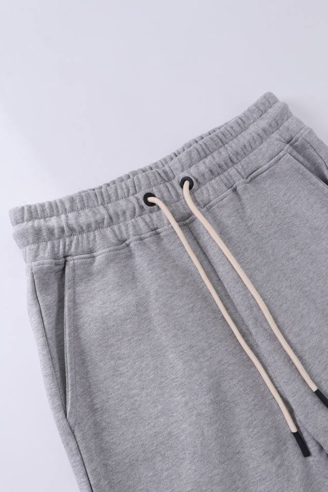 Burberry minimalist brand logo sweatpants. Made in China by a domestic OEM factory, using top-tier brand fabric (380g). Compatible with all body types. Features include an elastic waistband, black and white drawstring design, custom drawstring pockets, slanted side pockets, and a small back pocket. Colors: Black, Gray. Sizes: XS-XL.