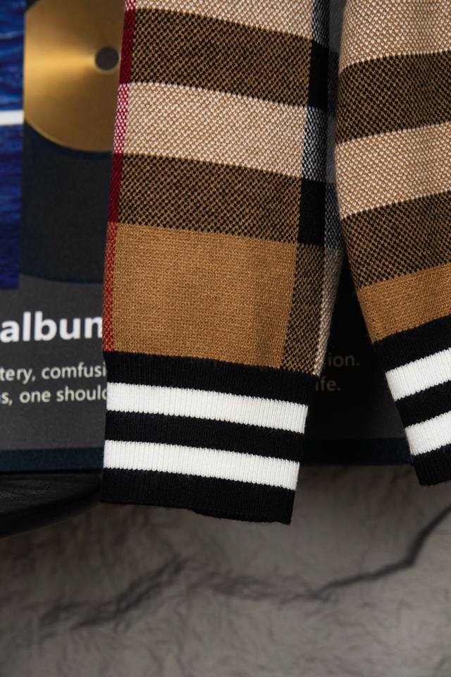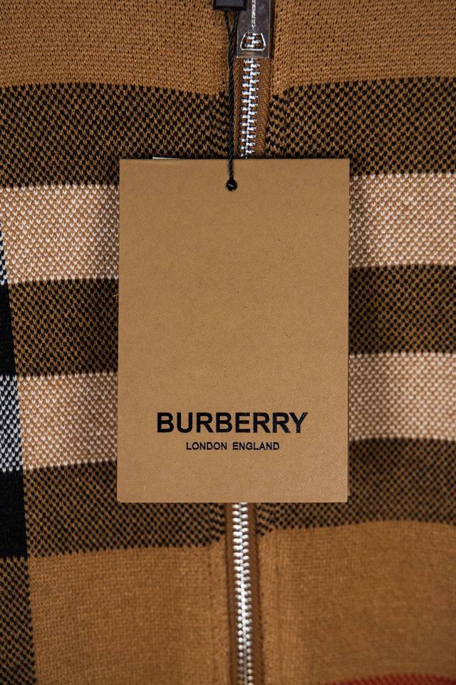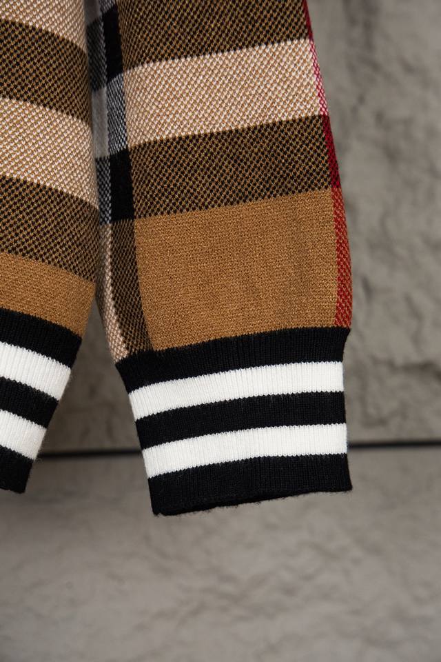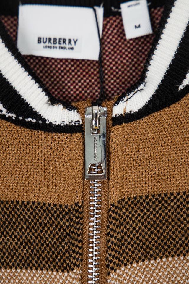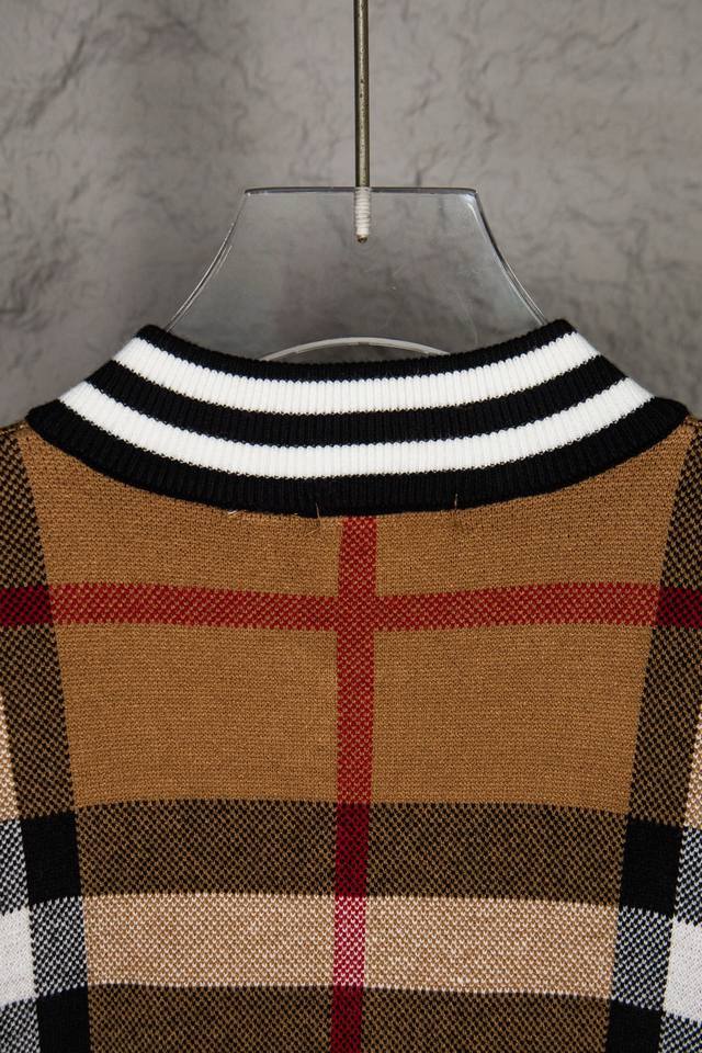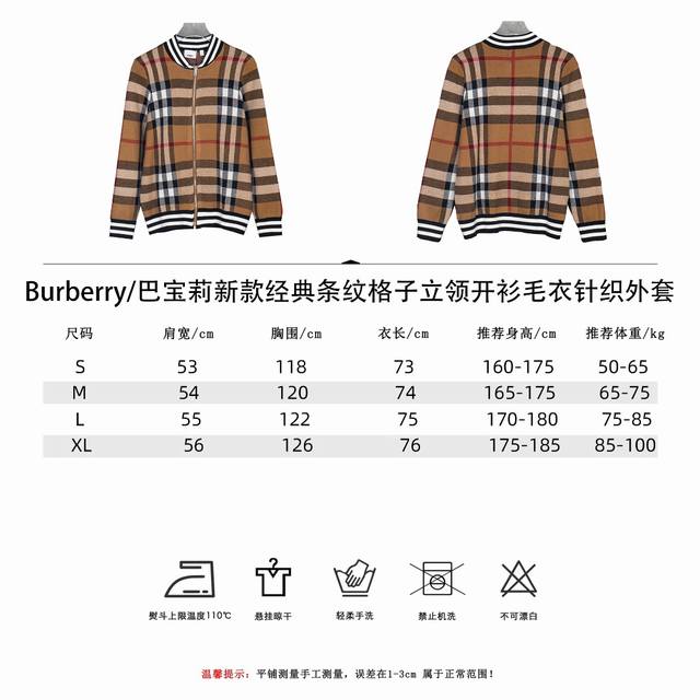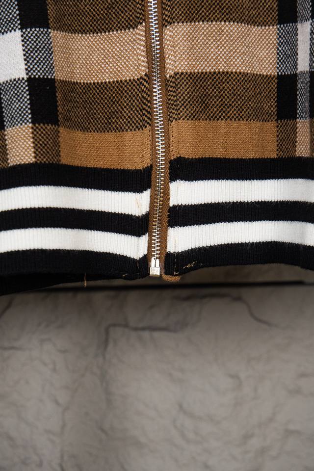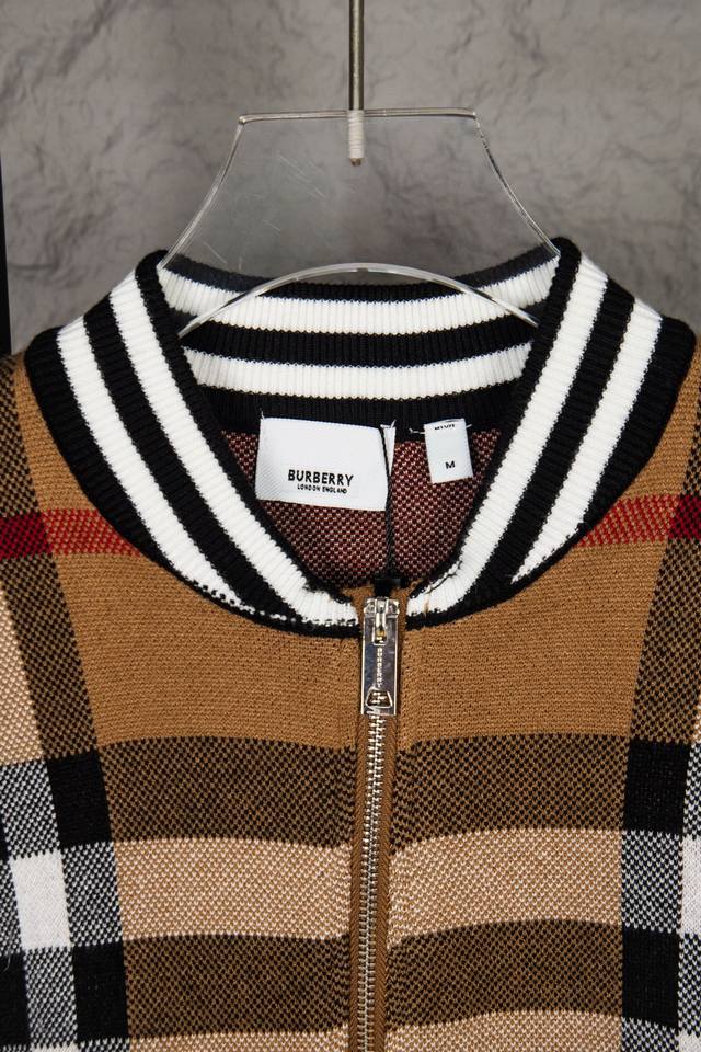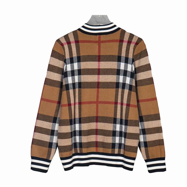 Burberry New Classic Striped Check Stand Collar Cardigan Sweater/Knit Cardigan Ddd Original knit check matching, stripe matching, custom zipper pull and three tags Ddd Color: Brown/Black Ddd Size: S, M, L DDD