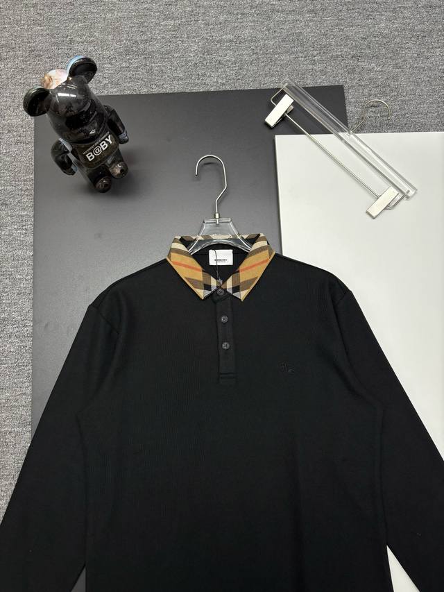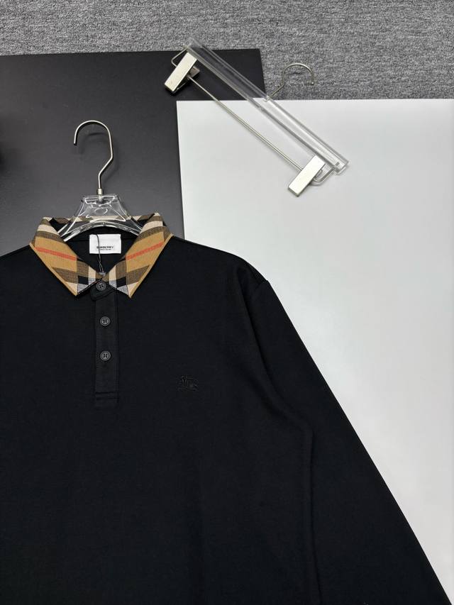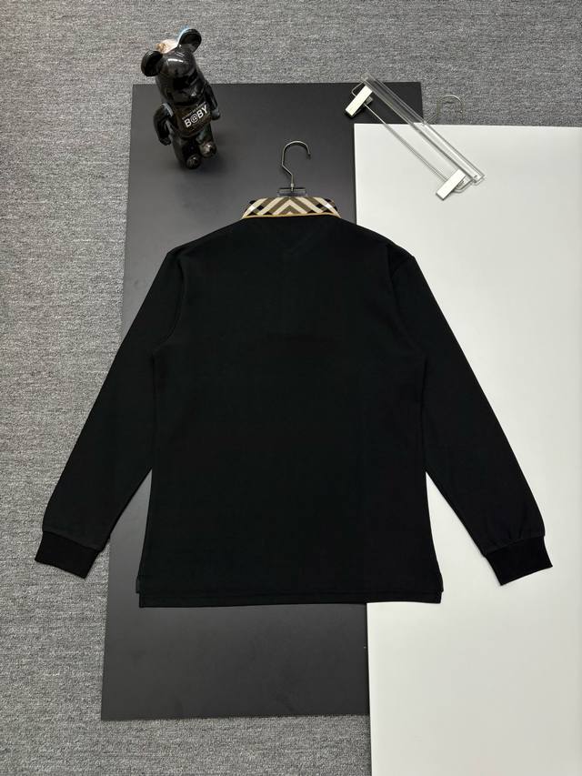 Burberry New Horse Embroidery Long-Sleeve Polo Shirt. Made with 250g pure cotton pique fabric, custom-dyed in the same vat, it feels incredibly comfortable and smooth. The cut is crisp and stylish. Produced by a top-tier brand's OEM factory, featuring imported Behringer embroidery machine for rich and textured embroidery. The ribbed cuffs and collar are made with imported yarn, ensuring long-lasting shape retention. A fashionable and unique autumn/winter style, super versatile and attractive. Suitable for both men and women, a must-have. Colors: Black, White. Sizes: M-3XL.