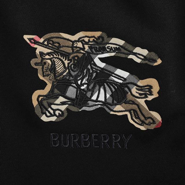 Burberry Pony Embroidered Suit Trousers (Original purchase price: 5950). The original fabric was custom-made: 450g reverse terry cloth with a fish-scale pattern, 450g double yarn ribbing, and the color was custom-dyed to match the original. The checkered fabric was laser-cut into the shape of a horse, then high-temperature positioning and pressing, embroidered with imported machines, and fixed with adhesive backing. Features thick patch pockets, an elastic waistband with drawstring adjustment for added strength, smoothness, and a beautiful, elastic fit. Side pockets with secured edges, flat elastic cuffs, and a relaxed fit. Size: S-XL.