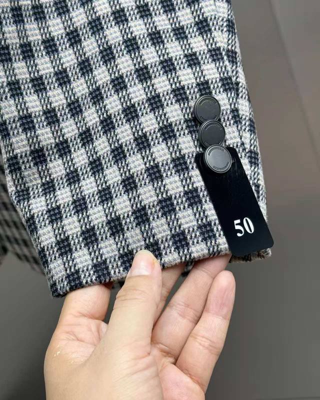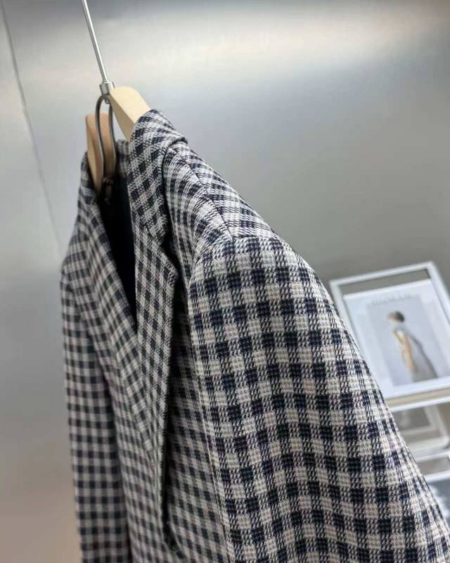Burberry Retro Check Suit, Warm Style for Winter DDD The check pattern is always in style. A check suit allows you to express more personality, unlike the monotony of gray or brown. If you happen to be a person with personality, a check suit will definitely satisfy you. It can make you stand out from the crowd and become the eye-catching one. Remember to keep the T-shirt underneath smooth, because a wrinkled T-shirt with a check suit jacket will make the overall look messy and lacking in style. DDD A check suit with a strong retro feel is an indispensable fashion item for winter! Pair it with a burnt orange scarf to instantly brighten up the whole look, making it warm and eye-catching! DDD Choose cropped jeans for the bottom, which are slimming and make your legs look longer, perfectly echoing the check suit, simple yet stylish! DDD is wearing a pair of brown ankle boots, which are not only warm but also super stylish, making her walk with a breeze! The brown of the boots complements the burnt orange of the scarf, making the overall outfit more harmonious and unified! DDD This combination retains a retro charm while not losing a modern sense of fashion, allowing you to wear plenty of warmth and style even in the cold winter! DDD Color: Gray Coffee DDD Size: 170-190 DDD Size Shoulder Width Chest Tall Sleeve Length DDD 170 44 102 69 60 DDD 175 45 106 71 61 DDD 180 46 110 73 62 DDD 185 47 114 75 63 DDD 190 48 118 76 64 DDD