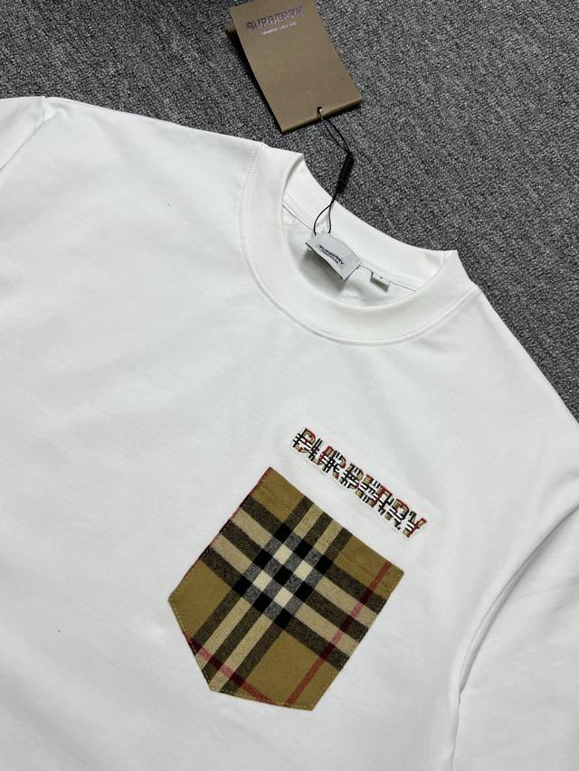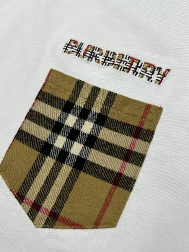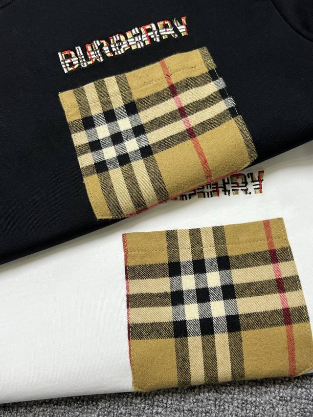 Burberry Short Sleeve T-Shirt Colors: Black, White Craftsmanship: Checkered pocket, letter embroidery Sizes: S-XL Fabric: 300g