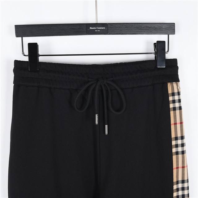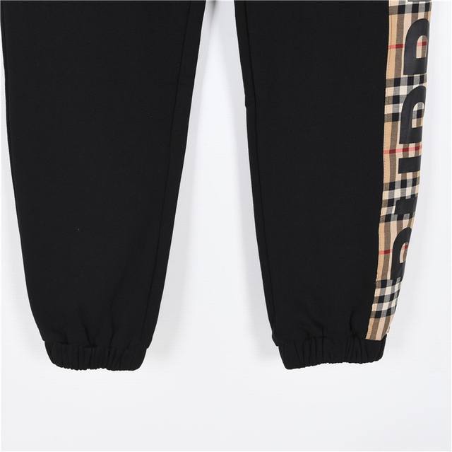 Burberry Side-Sealed Logo Check Trousers. Available online simultaneously with boutique style. Original version purchased from a domestic boutique for 4900 RMB. Made with custom-woven 380g blue-gloss yarn. The greige fabric boasts a 400g feel, smoothness, and drape. Hardware is independently molded. German imported TPU film, heat-pressed at 160 degrees Celsius. Symmetrical side check webbing, consistent waistline, honed using a modified domestic double-needle machine. Seemingly simple design, but full of small details! Colors: Black, Gray. Sizes: S-XL.