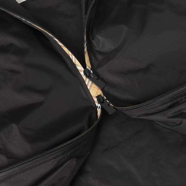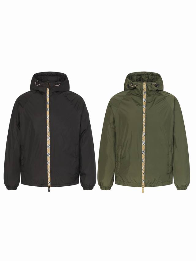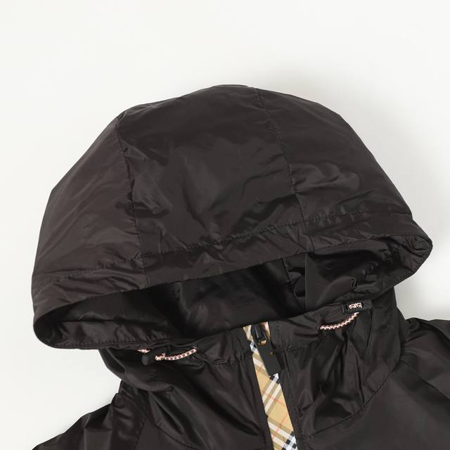 Burberry Silicone Stamp Nylon Hooded Jacket. This jacket embodies unparalleled craftsmanship and attention to detail, showcasing the brand's commitment to excellence. Featuring Burberry check trim and a B-shaped zipper pull, this lightweight jacket offers a relaxed fit. Adorned with a knight stamp appliqu