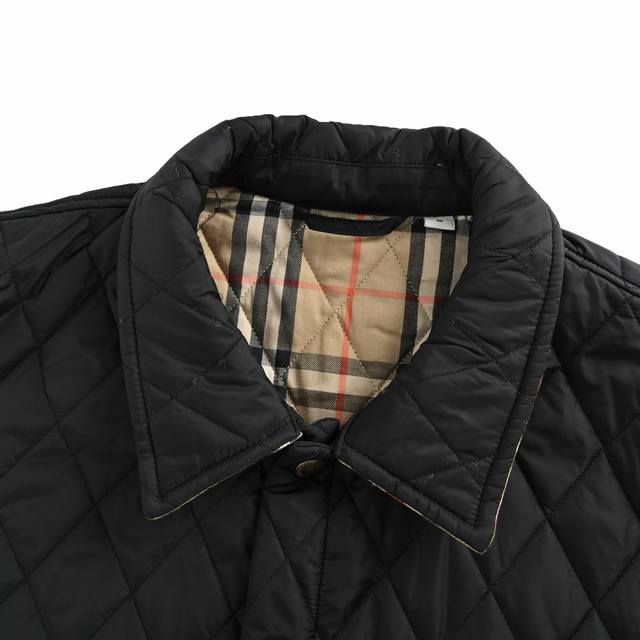 Burberry Solid Color Quilted Pocket Diamond Pattern Cotton Jacket. Originally purchased for 12,500. The outer fabric is made of imported glossy 40D polyester fiber, which has some waterproof and snowproof properties. It is particularly soft after washing and is also very durable and wear-resistant. The plaid lining is made of custom-dyed cotton fabric. It replicates the original craftsmanship, including the plaid pattern. The diamond pattern is precisely aligned, and the inner lining is laser- cut . The lining features the brand's vintage check pattern. It uses 37.5