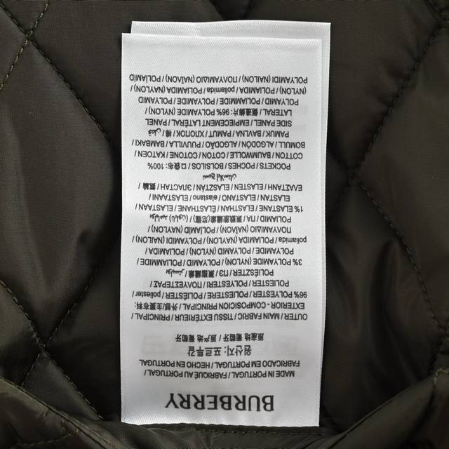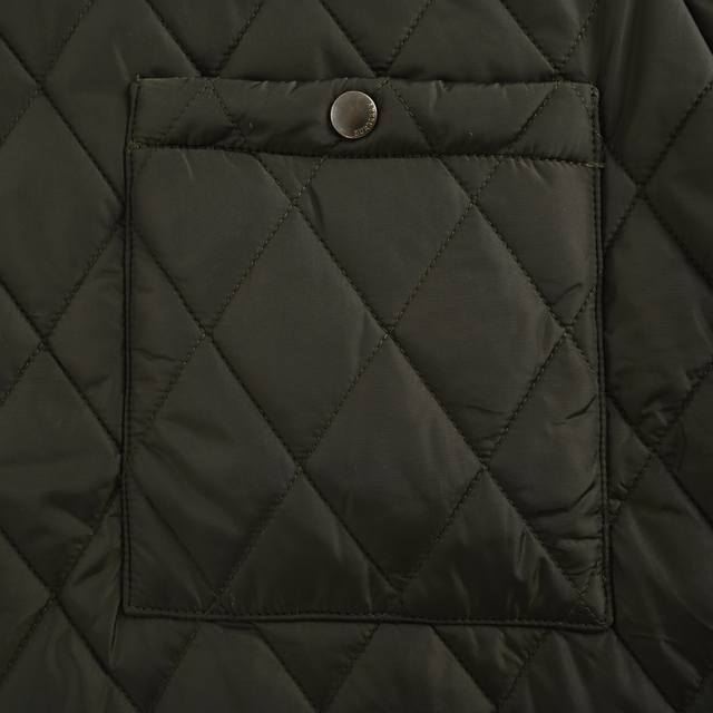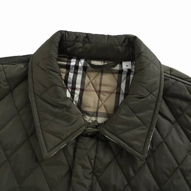 Burberry Solid Color Quilted Pocket Diamond Pattern Cotton Jacket. Originally purchased for 12,500. The outer fabric is made of imported glossy 40D polyester fiber, which has some waterproof and snowproof properties. It is particularly soft after washing and is also very durable and wear-resistant. The plaid lining is made of custom-dyed cotton fabric. It replicates the original craftsmanship, plaid pattern, and diamond pattern cotton quilting. The inner lining features the brand's vintage check pattern. It uses 37.5
