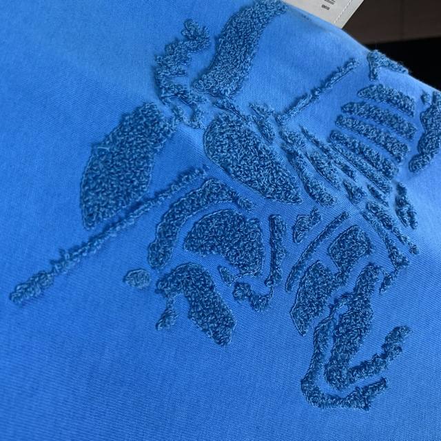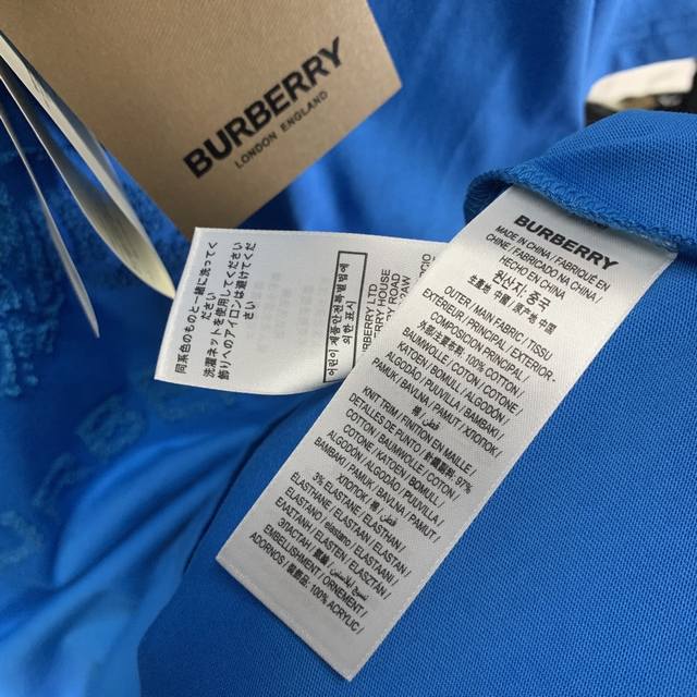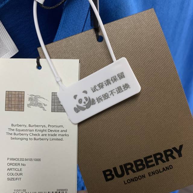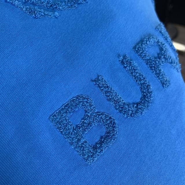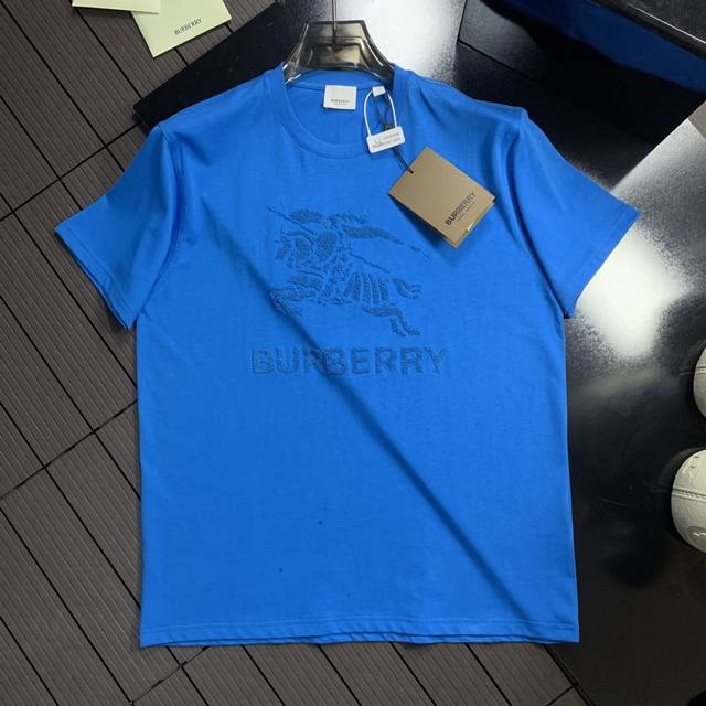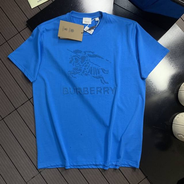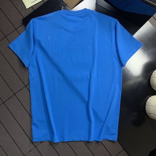 Burberry solid color round neck letter embroidered short-sleeved T-shirt for men, sapphire blue