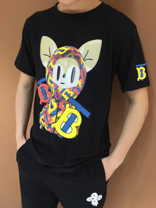 Burberry, Spring/Summer 2023 New Arrival, available in boutiques, original factory overrun, fashionable and luxurious item, made with imported 120-count European cotton fabric, featuring the latest cartoon print pattern, exquisite hand-embroidered logo on the cuffs, boutique-quality look, stylish and chic, comfortable and breathable, all tags included, loose fit, sizes: S-2XL DDD