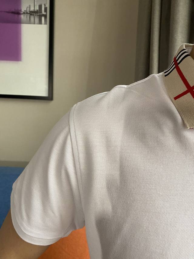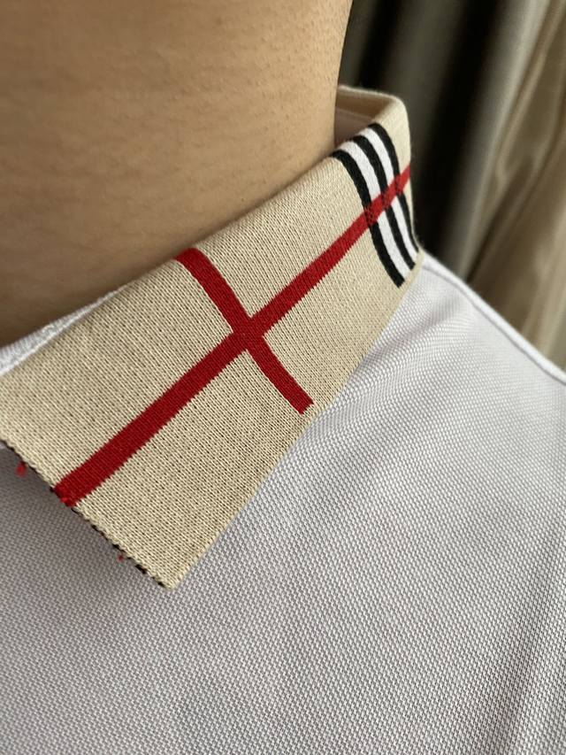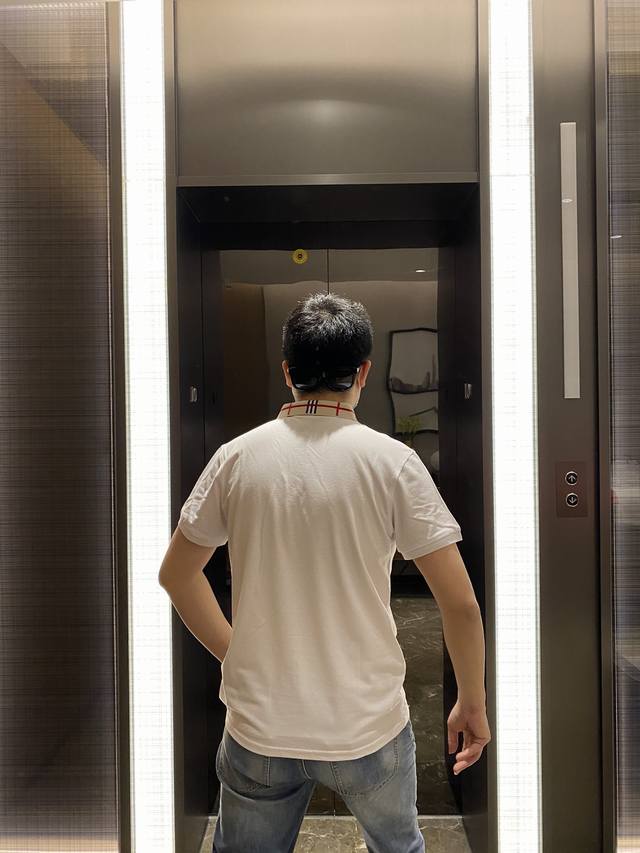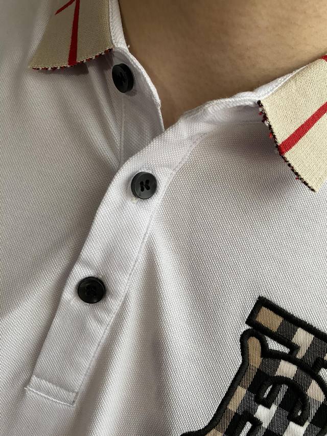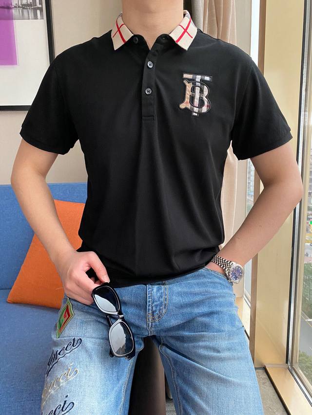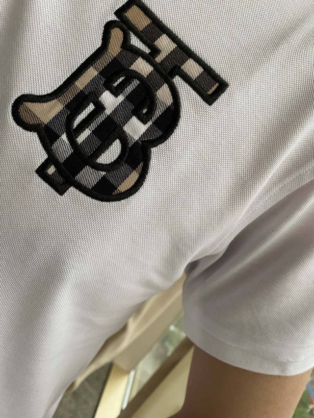 Burberry Spring/Summer New Arrival, same style as Gucci boutiques. A light luxury business style, suitable for everyday commuting. Features a jacquard ribbed knit collar, clear and three-dimensional embroidery, and high-count custom mercerized piqu
