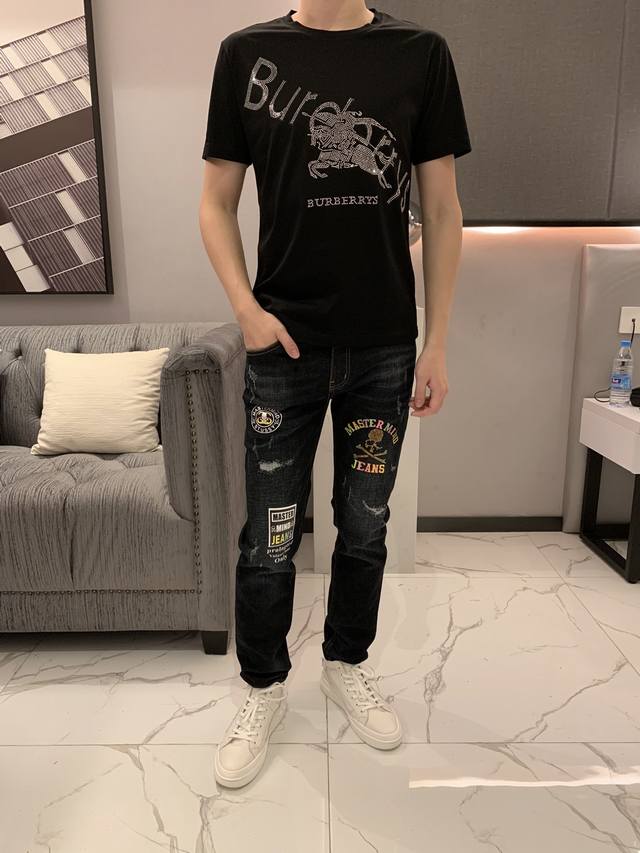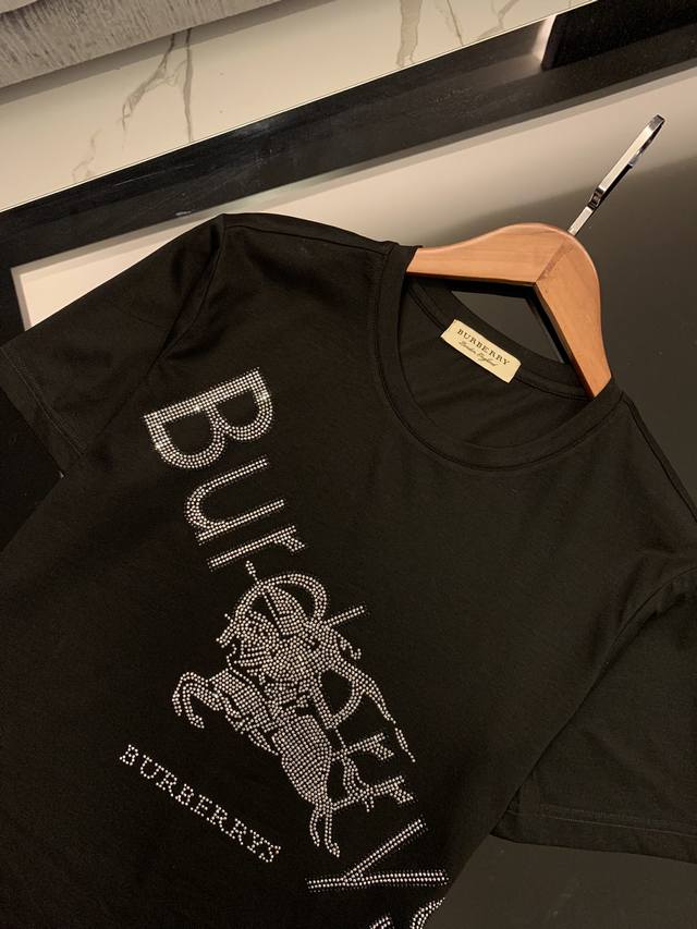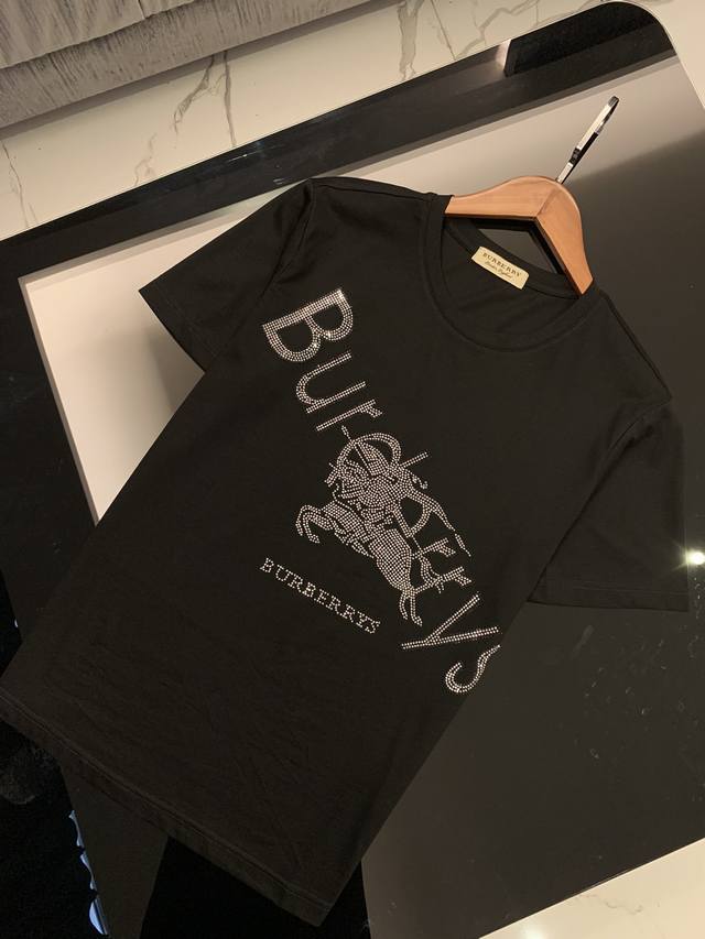 Burberry Spring/Summer Newest Men's Short-Sleeve T-Shirt, Official Website Synchronized, High-End Quality, Simple and Stylish, Customized, European Imported Double Mercerized Cotton Fabric, Soft and Delicate to the Touch, Skin-Friendly and Comfortable to Wear. Imported Hot-Film Rhinestone Logo Design on the Chest, Versatile and Casual, Great Fit, A Must-Have for Handsome and Trendy Men. Sizes: M-3XL DDD