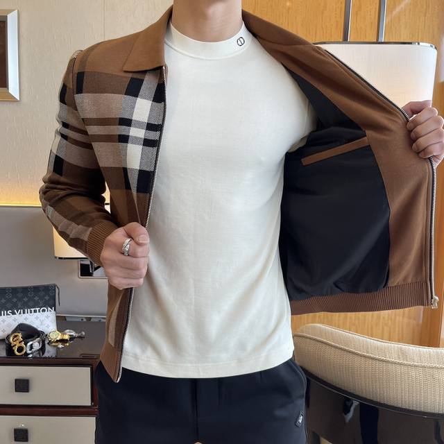 Burberry SS Fall Hot Selling Knitted Jacket, made with custom high-quality polyester fiber fabric! Top fashion brand element logo design, complete with all three labels! Original hardware accessories, smooth lines, exquisite craftsmanship, superb fit, comfortable fabric, windproof and warm, easy to match and very stylish, a must-have for casual men! Sizes: M-3XL. Model 178cm, 145kg wears L,
