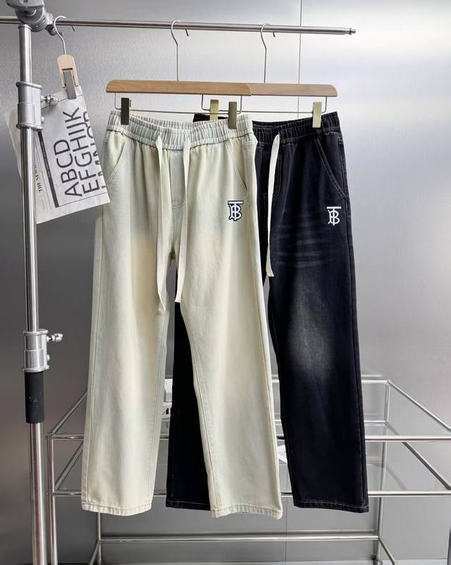 Burberry Tb Overseas Version American High Street Minimalist Gradient Wash Straight Leg Jeans Casual Pants, Unisex. Each pair features a gradient wash process, giving the pants a more layered look and a trendy, edgy style. Embroidered patches on the pockets and an adjustable drawstring waistband. American-style relaxed fit for a flattering silhouette, suitable for all body types, both men and women. Looks great with any top, versatile and timeless. Colors: Black, Gray, Yellowish-brown. Sizes: M-3XL (See picture 9).