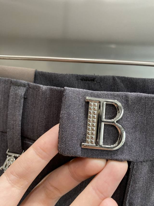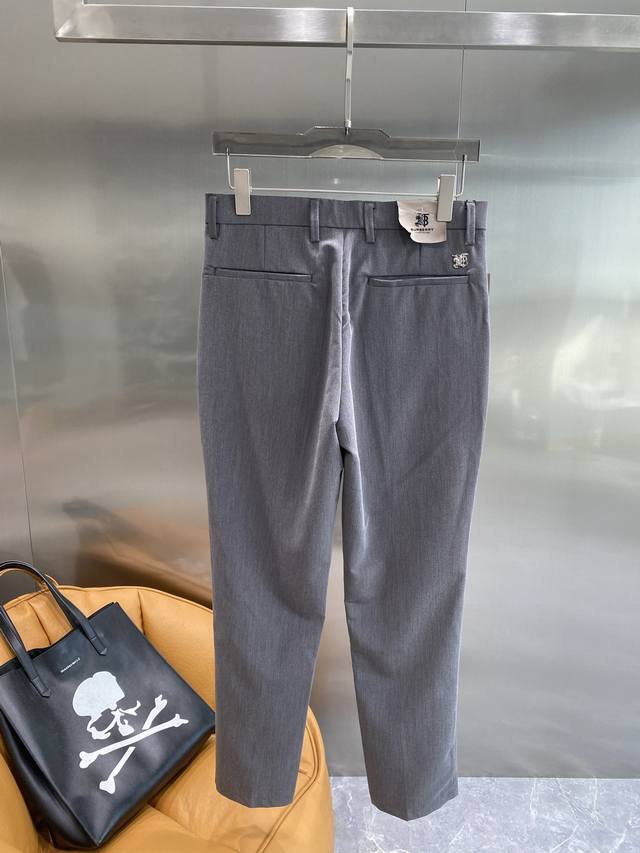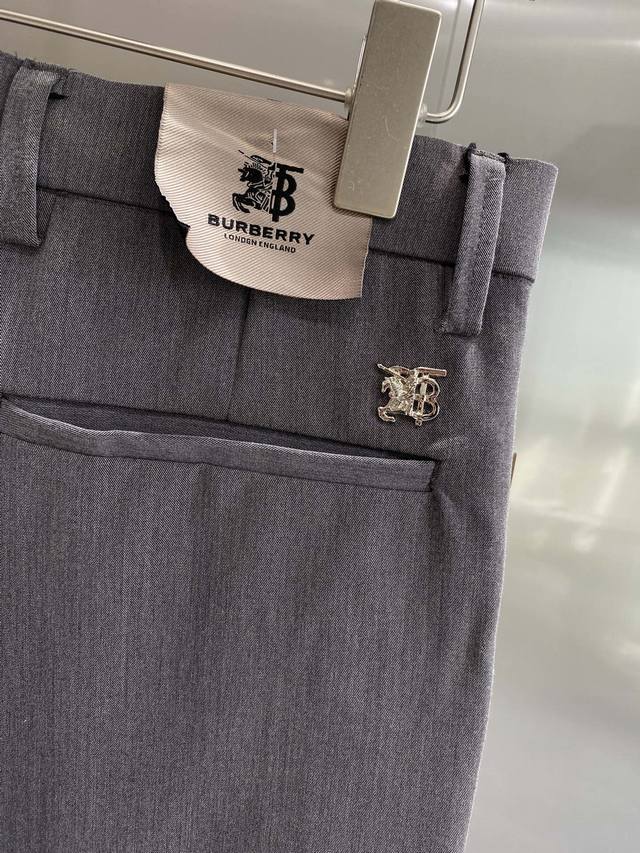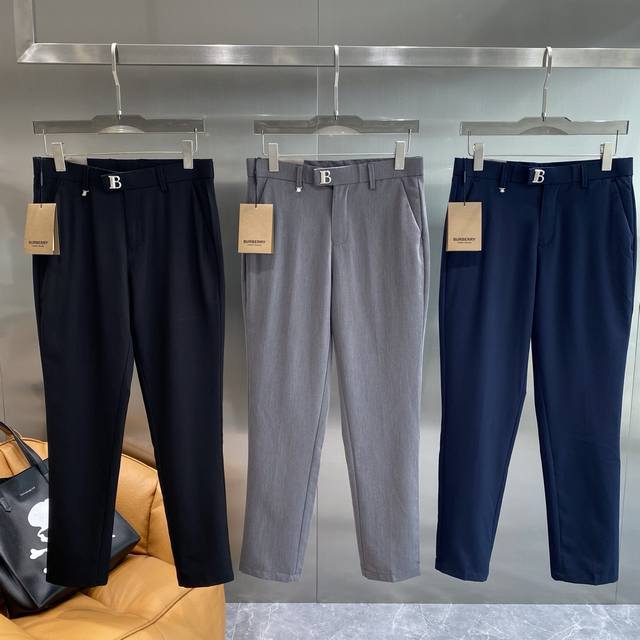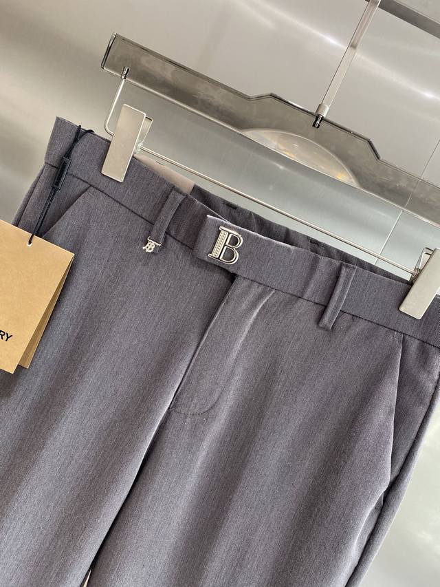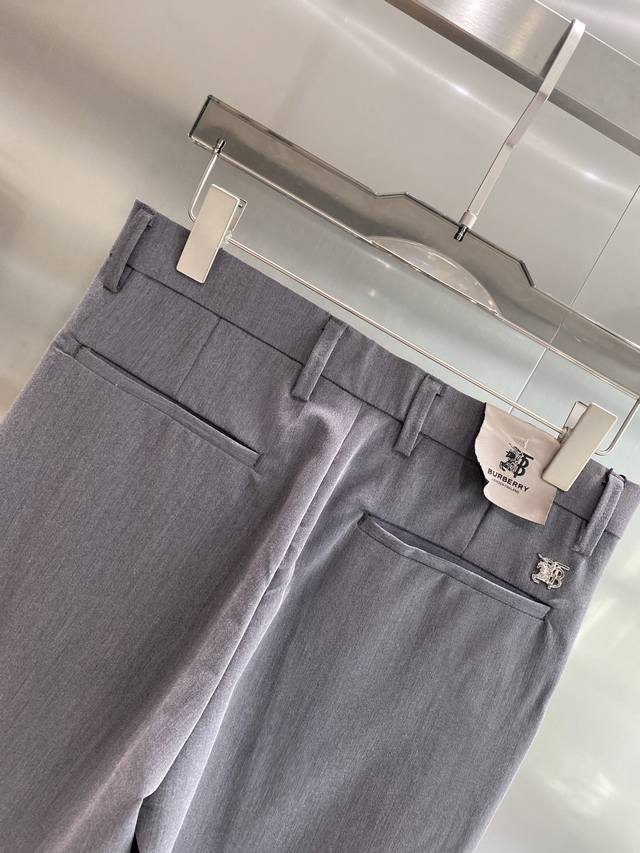 Burberry trousers, exquisite details exude style. The trousers have a superb cut; the slim fit perfectly hugs the leg lines, looking both sharp and comfortable. The iconic "B" metal buckle at the waist is refined and eye-catching, becoming the finishing touch to the overall look and subtly showcasing the brand identity. The pockets are well-placed and shaped. Sizes 29-36, size 35 not available.