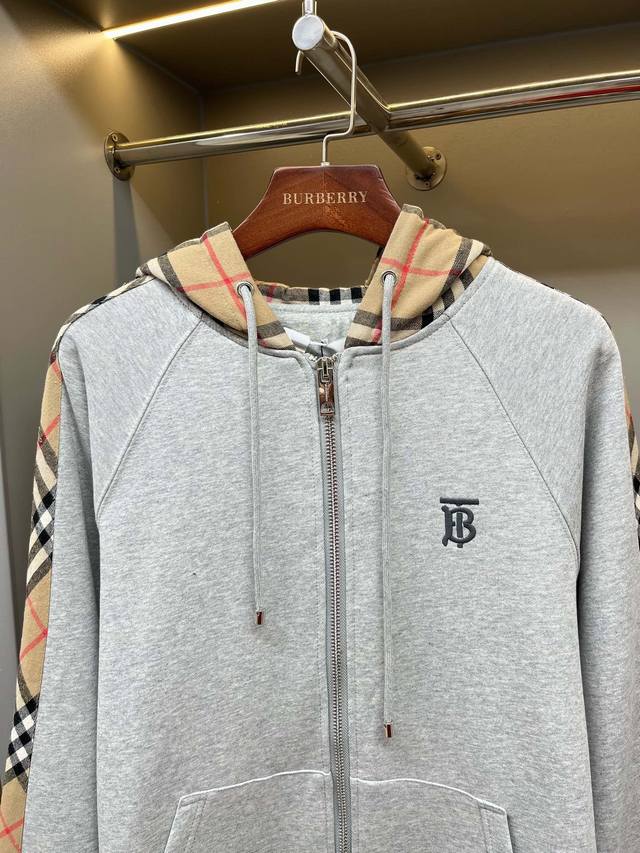 Burberry Vintage Check Cotton Hooded Sweatshirt Jacket - A top-selling Burberry item, a store treasure, in stock and ready to ship immediately! A high-quality, long-awaited find from a Burberry authorized distributor! Made in Hefei, this is a Burberry exclusive, matching check patchwork couple's sweatshirt from major boutiques. A versatile, high-quality pure cotton hooded sweatshirt! This Burberry exclusive product surpasses all other versions on the market. It's simply not in the same league. Whether it's the materials, the detail reproduction, or the craftsmanship, we fear no challenge, striving to offer you an exceptional product. This fleece cotton sweatshirt jacket features a contrasting hood. The sleeves are made of vintage check wool-cotton blend flannel fabric, embroidered with the Thomas Burberry logo. The clean and crisp design, with a light gray finish and Burberry's classic plaid pattern, is simply irresistible. The classic plaid extends from the hood to the arms, creating perfect symmetry on both sides. The plaid pattern is precisely cut throughout, and the small Burberry embroidery on the chest adds a touch of understated sophistication. The fabric adheres to the same thickness as the original Burberry, resulting in a strong sense of layering, unlike the thinner fabrics used in other markets that lack drape. The trendy and unique printed embroidery design, along with the laser-engraved hardware at the drawstring, perfectly showcases the Burberry brand's presence, making it highly recognizable. The overall look is simple, sophisticated, and basic, and the loose fit further enhances its fashionable and high-street casual style. It features a high-weight fleece fabric, with the sweatshirt itself weighing a hefty 900 grams, giving it a substantial feel. The high-density fabric's texture is clearly visible, ensuring softness and comfort, while the combination of breathability and warmth is a pleasant surprise! It won't feel stuffy and is also windproof. The sweatshirt fabric represents a genuine investment in quality, offering a comfortable experience you can see and feel against your skin! The overall feel is extremely comfortable, with excellent skin-friendliness. The OV (Original Variety) cut is also perfectly versatile, suitable for various occasions. It's exceptionally high-quality, exuding a sophisticated and eye-catching charm, showcasing the brand's standards and your pursuit of fashion! Don't miss out on this amazing piece! Exclusive stock, exclusive resource, highly recommended! Good things speak for themselves; missing out would be a regret. We look forward to seeing how well you style it! Available in sizes S, M, L, XL, and XXL.