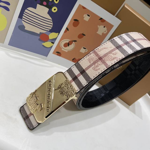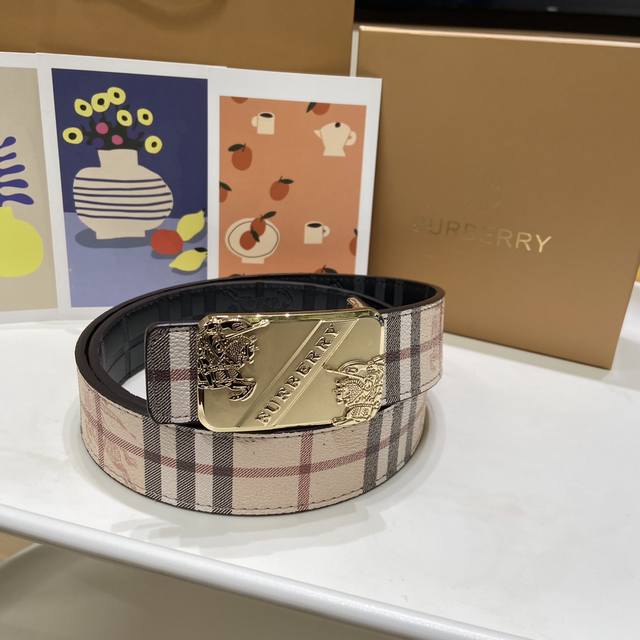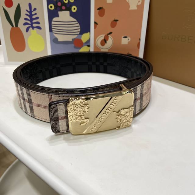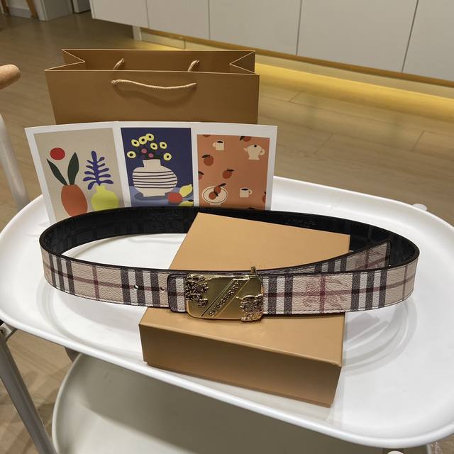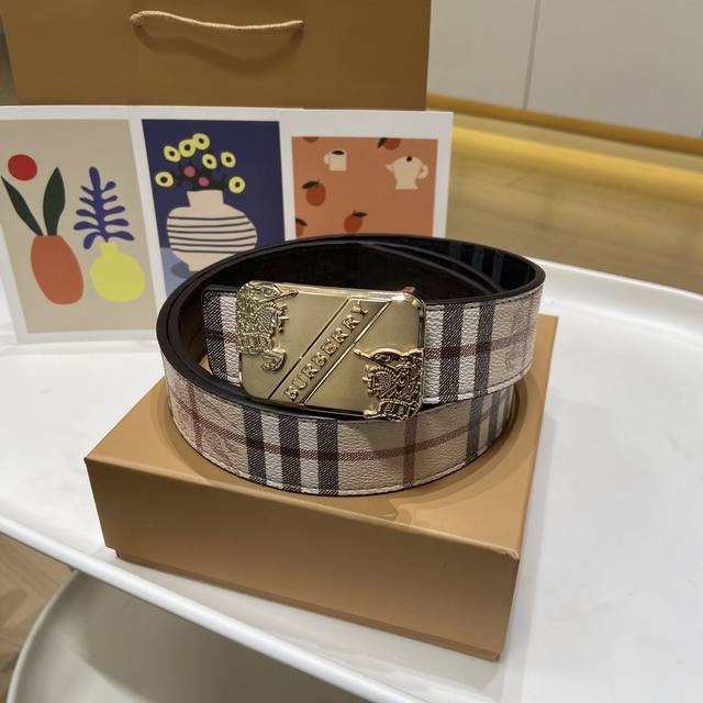 Burberry's classic embossed belt features a gold-plated logo buckle, a stylish and timeless design, the latest iteration of the iconic design! Shiny palladium plating, exceptional quality, comes complete with gift box and designer packaging. Made from two-layer genuine leather, this 3.5cm wide belt is exquisitely crafted for a classic and timeless charm. Give the most exquisite belt to your loved ones!