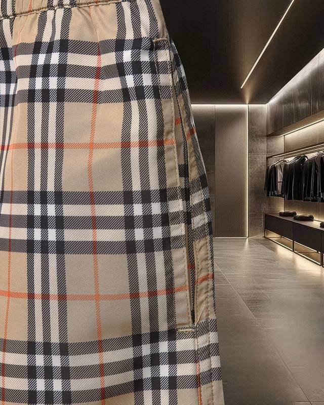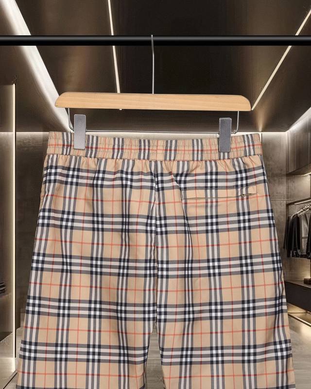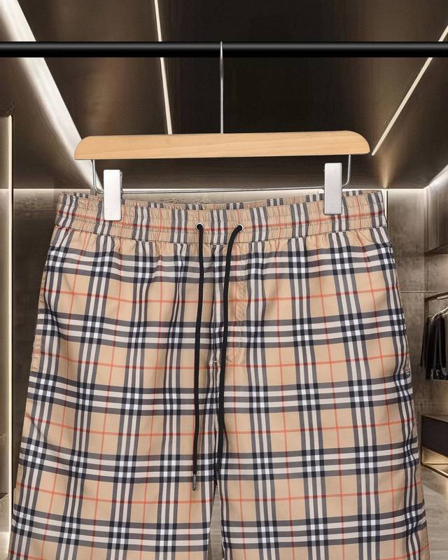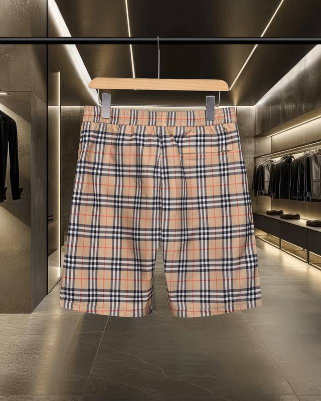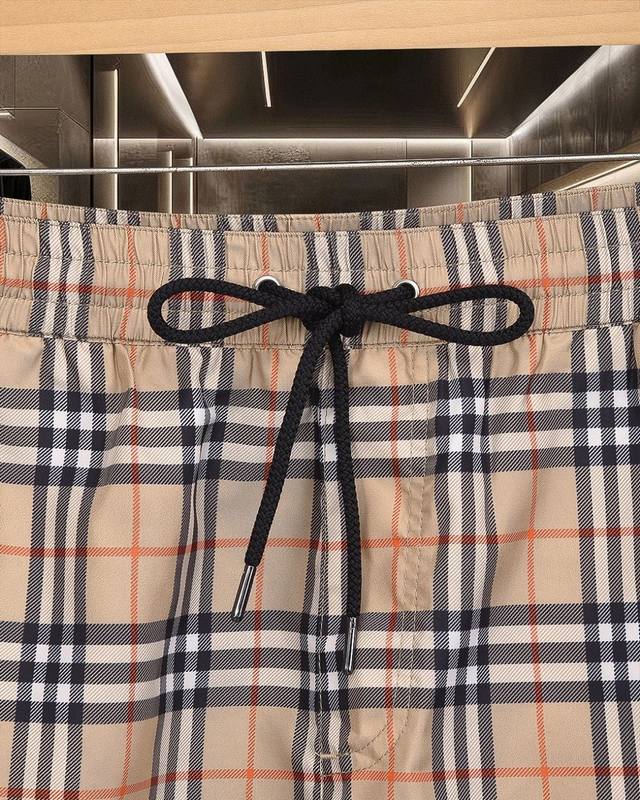 Burberry's hottest new style: Classic khaki drawstring plaid beach casual five-inch shorts, 2025Ss official website new arrival. Features double side pockets, elastic drawstring waist, exquisite mesh lining, high-end version, custom-made fabric for high breathability and comfort, impeccable craftsmanship, custom logo engraving buttons, and all three tags included. Brand elements and design concepts reflect high quality. Soft and delicate to the touch! Presents a casual cut, with a fantastic fit! Sizes: M-XL