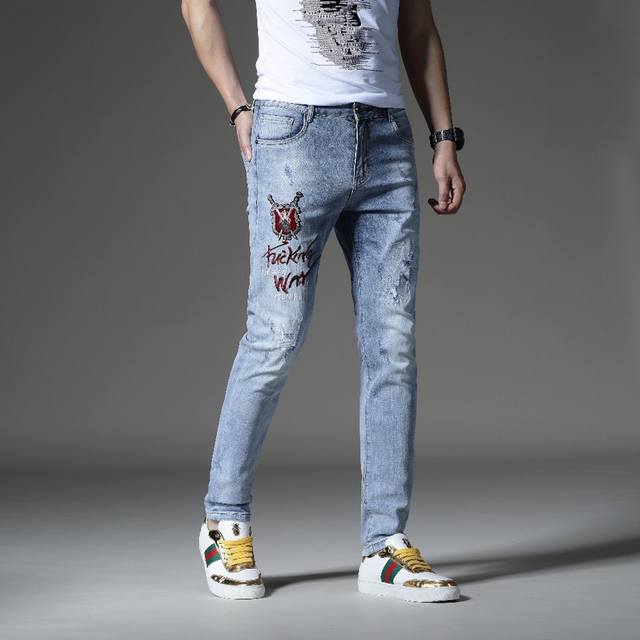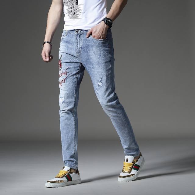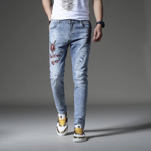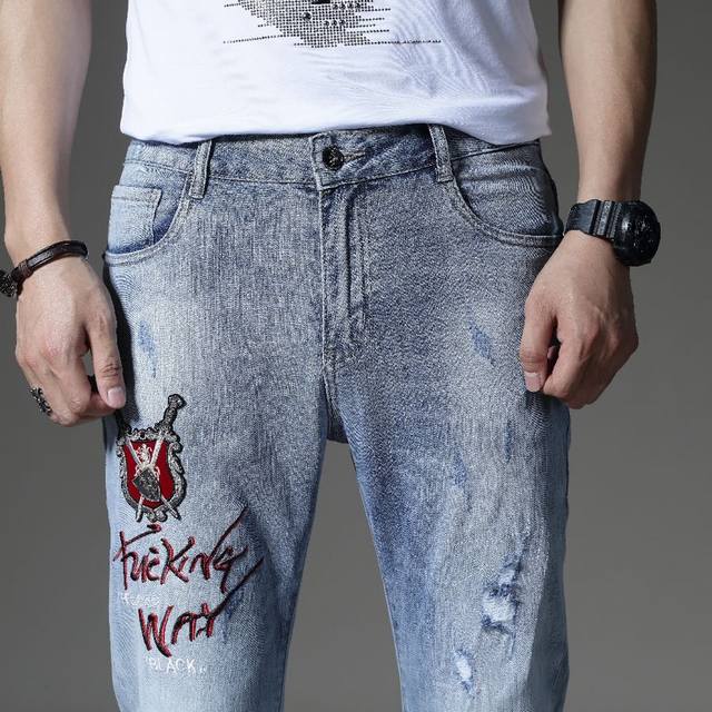 Burberry's latest boutique style, first release! High-end fashion jeans that instantly transform you into an oppa! Simple and stylish three-dimensional tailoring, unique craftsmanship, original factory production; excellent fit, exuding confidence; every detail showcases perfect quality. The classic logo symbolizes the brand's highest quality. Owning these jeans is the beginning of another fashion trend. Sizes 28-36, no size 35.