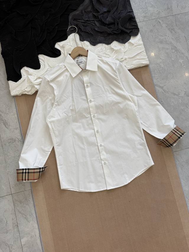 's details feature the brand's signature check pattern on the collar and cuffs, perfectly embellished against the solid color base, cleverly breaking up the monotony and adding a touch of sophistication.