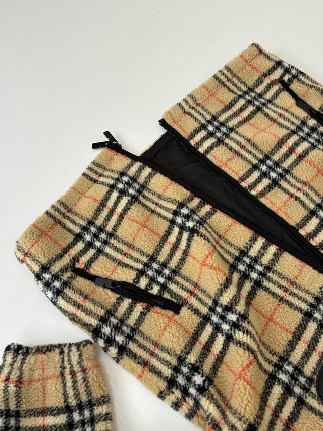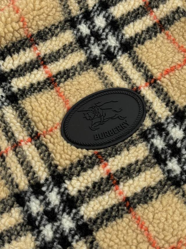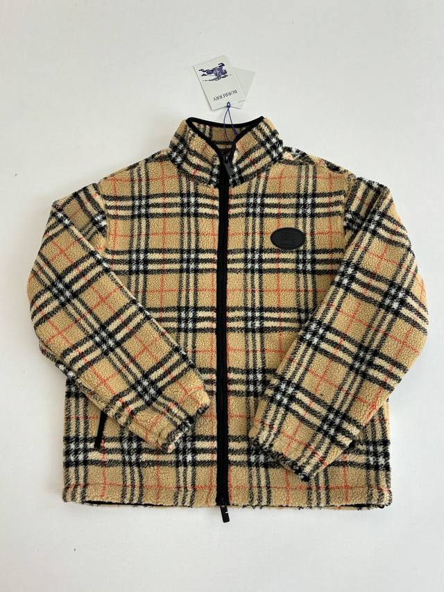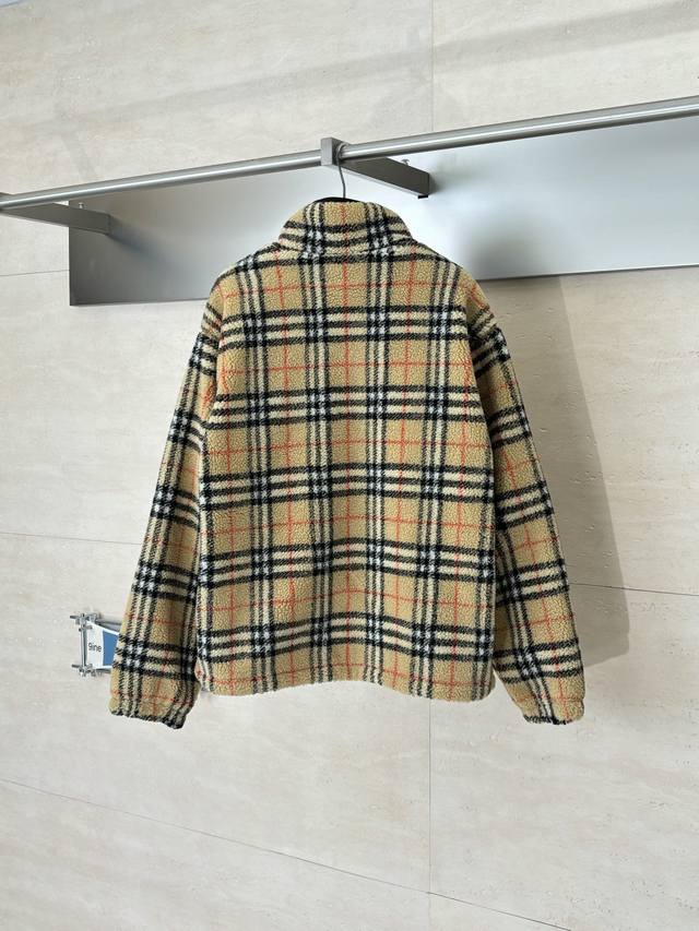 Burerry* Burberry 26Ss Early Spring New Check Stand Collar Plush Long Sleeve Jacket DDD Classic Vintage Check with symmetrical cut, black circular equestrian patch on the chest, black knitted trim zip closure, echoing zipper details on pockets, elasticated sleeves and drawstring hem, black lining DDD Size: SML XL DDD