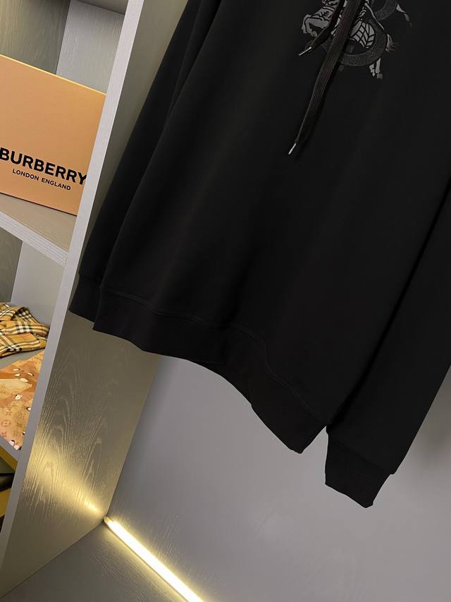 fears no challenge in terms of materials, detail reproduction, and craftsmanship, striving to offer you a truly exceptional product. This cotton hoodie presents a classic silhouette. Adorned with the brand's equestrian knight logo embroidery and the exclusive Thomas Burberry logo design, the overall loose fit exudes a youthful and sporty style, highlighting modern urban fashion. It looks great on, with excellent results, and is effortlessly stylish. Whether for casual wear, sports, or high-street fashion, it's easy to wear! The high-count pure cotton fabric is extremely comfortable to the touch and has excellent skin-friendly properties. Furthermore, the Ov design offers a perfect fit, perfectly suited for various occasions. It's exceptionally elegant, with outstanding quality and charm, showcasing the brand's prestige and your pursuit of fashion! As a Bbr fan, this is a style you shouldn't miss. All items are currently in stock, so grab them while you can! Sizes available are S, M, L, XL, and XXL. Please refer to the size chart for