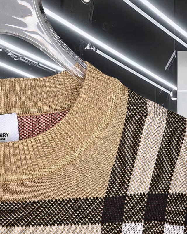 Burberry classic colorblock plaid pullover knit sweater, imported wool blend fabric