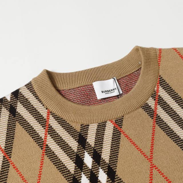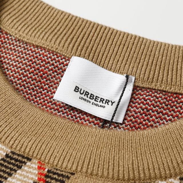 High quality Burberry 24 autumn plaid round neck pullover sweater couple's style