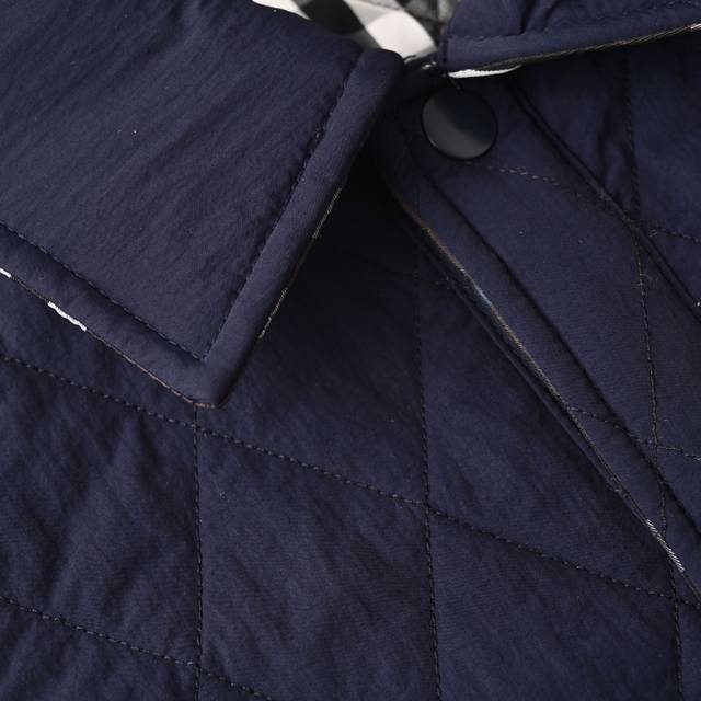 High-quality Burberry Shield Embroidered Reversible Check Cotton Jacket. Purchased from the original version (12). The outer fabric is made of imported glossy 40D polyester fiber, which has some waterproof and snowproof properties. It is particularly soft after washing and is also very durable and wear-resistant. The check lining is made of custom-dyed cotton fabric. It replicates the original craftsmanship, check pattern, and diamond-patterned cotton quilting. The inner lining is laser-cut. In addition to quilting for temperature control, it boasts a sporty and casual design that is comfortable, warm, and stylish. It is reversible. It features a B-shaped shield appliqu