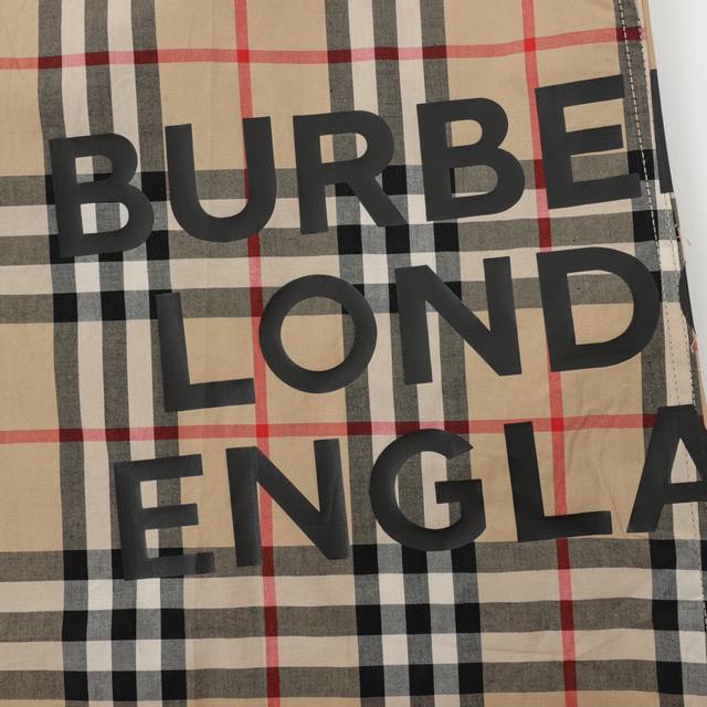 High-quality matching Burberry long-sleeved shirt with checkered hem and logo. Custom-woven and dyed, identical to the original, 80-count double-yarn pure cotton. Three batches of samples were made to ensure color consistency. German imported TPU film, heat transfer printing at 160 degrees Celsius. Symmetrical neckline, matching cuffs, symmetrical red lines on the placket, and matching seams. Extremely high alignment requirements. Original logo buttons, not shell buttons, 110-mesh buttonholes. Back has horizontal and vertical seams, but not matching the pattern. Please note the difference. Size: Xs-L.