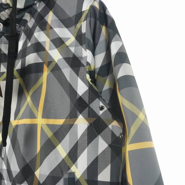 High-quality replica Burberry 23Fw checkered hooded jacket. Purchased from the original for 19200. The entire lining is platinum-stamped, giving the jacket a crisp and tailored look, perfectly replicating the original. Made with custom-woven and dyed checkered fabric, the jacket undergoes extensive matching and stitching, resulting in significant fabric waste. 2.8M of fabric was used per garment. Compared to the older small checkered jacket, the new large checkered pattern suffers from piece-by-piece matching waste. To ensure perfect alignment, all pieces are hand-cut, resulting in extremely high labor costs, all to perfectly replicate the original effect! Features include an invisible zipper lining, custom-made drawstring rubber, and separately molded drawstring hardware. Hem and cuff hardware are also separately molded and custom-made. The jacket has 26 bar stitching points. These small details directly distinguish it from off-the-shelf versions on the market that don't match! The bodice must be aligned correctly, sleeves must be aligned with the bodice, shoulder seams must be aligned front to back and left to right, and neckline and cuffs must be aligned. The fabric should not have excessive weft skew. The sewing seams need to be adjusted to ensure perfect alignment. Size: S-XL