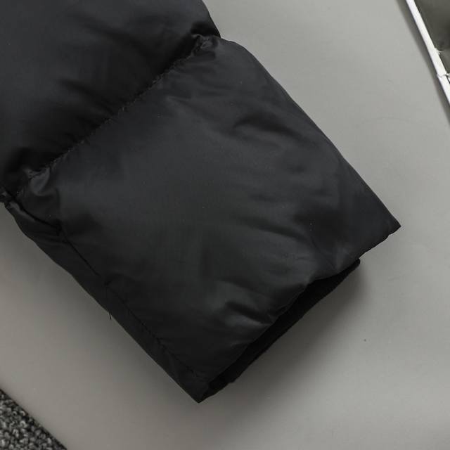 High-quality replica Burberry Fall/Winter detachable hooded down jacket, same style worn by Zhou Dongyu. Design concept: Burberry London England's new winter down jacket, top-quality original Burberry detachable sleeve down jacket, same style worn by Zhou Dongyu, detachable sleeves, can be worn as a vest, two ways to wear one garment, the checkered trim at the collar is made of soft and skin-friendly cashmere, a main recommended style sold on the official website. Ddd Fabric + Features: Ddd's inner filling is made with authentic, top-grade imported Polish 90% white duck down, lightweight, delicate to the touch, soft, resistant to deformation, and non-see-through. Widely used in ski jackets and winter clothing. Ddd meets European standards for warmth retention, filled with large down feathers. Each down jacket has a fill weight of up to 580 grams, meeting national standards. It springs back immediately when pressed, high quality, high-quality version, 1:1 replica of the original, with excellent loft. It feels comfortable and doesn't feel restrictive when worn. The slim fit is flattering and avoids a bulky look. Ddd's outer fabric is 100% nylon, and the lining is also 100% nylon, the highest quality available on the market, without exception. Everything is customized according to the original design. Ddd's original factory produces electroplated hardware, all custom-made, not the replica versions found in the market. Ddd's sleeves are detachable and can be used as a vest. Unisex design, maximizing the aesthetics and practicality of down. It can be worn as a vest or an outerwear piece, a simple and versatile design. Snap buttons and a concealed two-way zipper closure; drawstring hood and 3D silicone logo plates on the hem and sleeves. Craftsmanship: Authentic Burberry detachable sleeve hooded down jacket, exclusively customized to the original design, adhering to the original specifications! Features a high collar and hood with a vintage check lining, detachable sleeves creating a vest-like look, super flattering, comfortable, warm, and versatile enough to be worn as a vest. Overall, it looks high-end and unique. Exclusive heavy-duty design, top-tier craftsmanship in China, extremely difficult to produce. Color: Black. Sizes: S, M, L, XL. Chest: 116 120 124 129. Length: 70 71.5 73 75. Sleeve Length: 61 63 65 67.