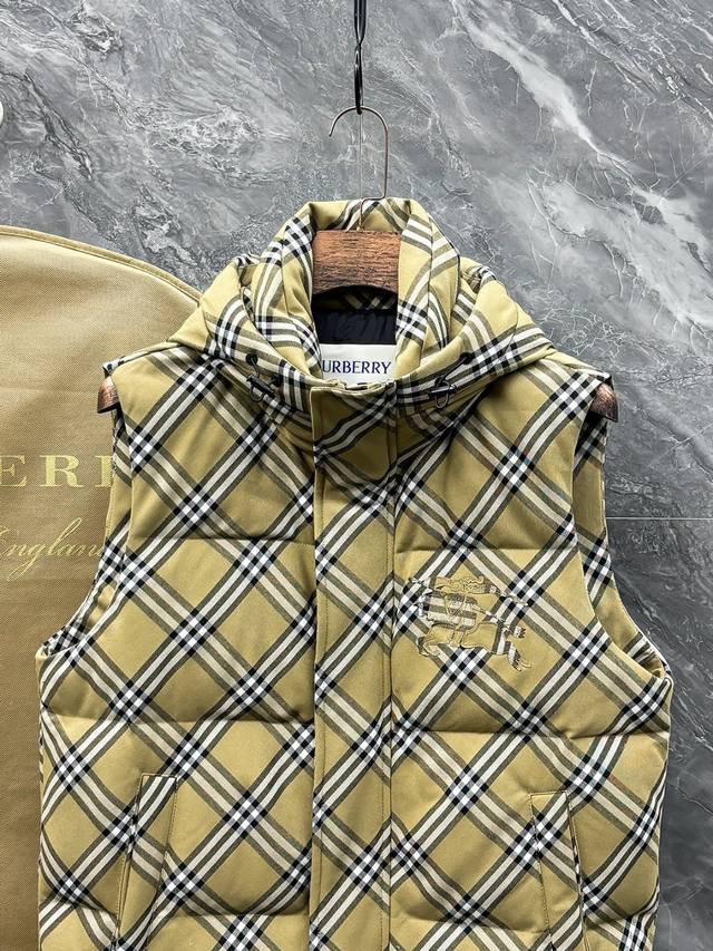 Hot Selling Burberry #25 Autumn/Winter Men's Fashion Hooded Down Vest DDD A light luxury, fashionable, and casual style, lightweight, warm, and soft! A low-key yet stylish and versatile piece that's undeniably fashionable! A Hong Kong trade order item, a must-have item! As a brand that everyone admires, their control over the source of goods is undoubtedly strict. This very cool, lightweight, and flowing hooded down jacket DDD features a more attractive logo badge; a small hood design, functional slanted pockets on both sides, and high-quality original paint snap buttons, easily showcasing brand recognition and superior performance. It will definitely turn heads when worn!!! The overall material is also superb! Crafted from imported Italian fabrics, this piece boasts the premium feel of a century-old brand. The lining is made with 90% white goose down and 10% feathers, featuring full, horizontal quilting for excellent fluffiness and resilience. The outer layer is 100% nylon. For inspection, the high fill power is guaranteed. The perfect fit is stylish without being bulky, embodying the series' minimalist aesthetic. Lightweight and warm, it offers superior protection against the cold. A high-street luxury item that combines style and performance, this piece is sure to turn heads. Color: Apricot. Sizes: M, L, XL, 2XL, 3XL.
